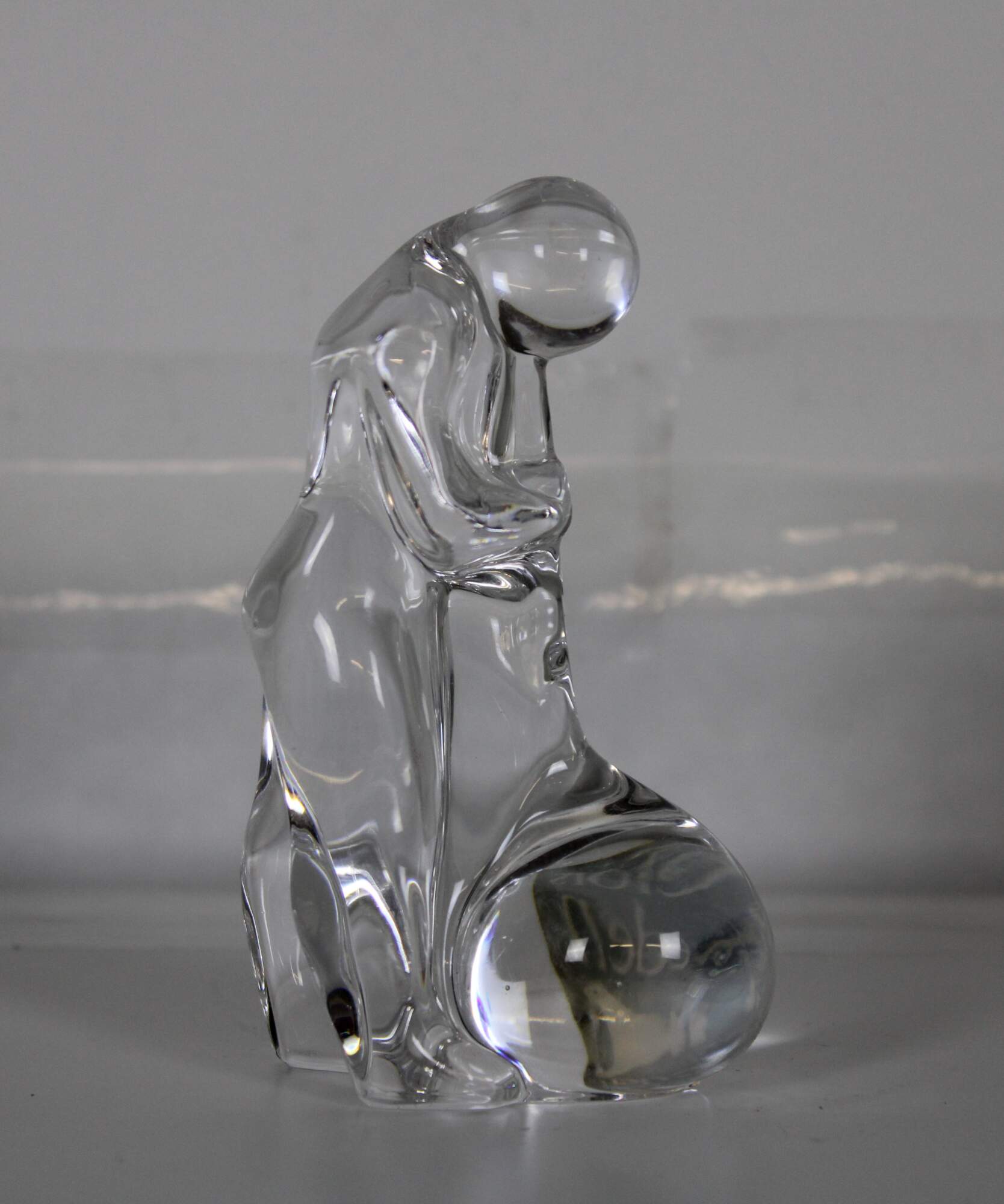 Vintage Orrefors Swedish crystal semi-abstract figurine in the shape of a glass blower.