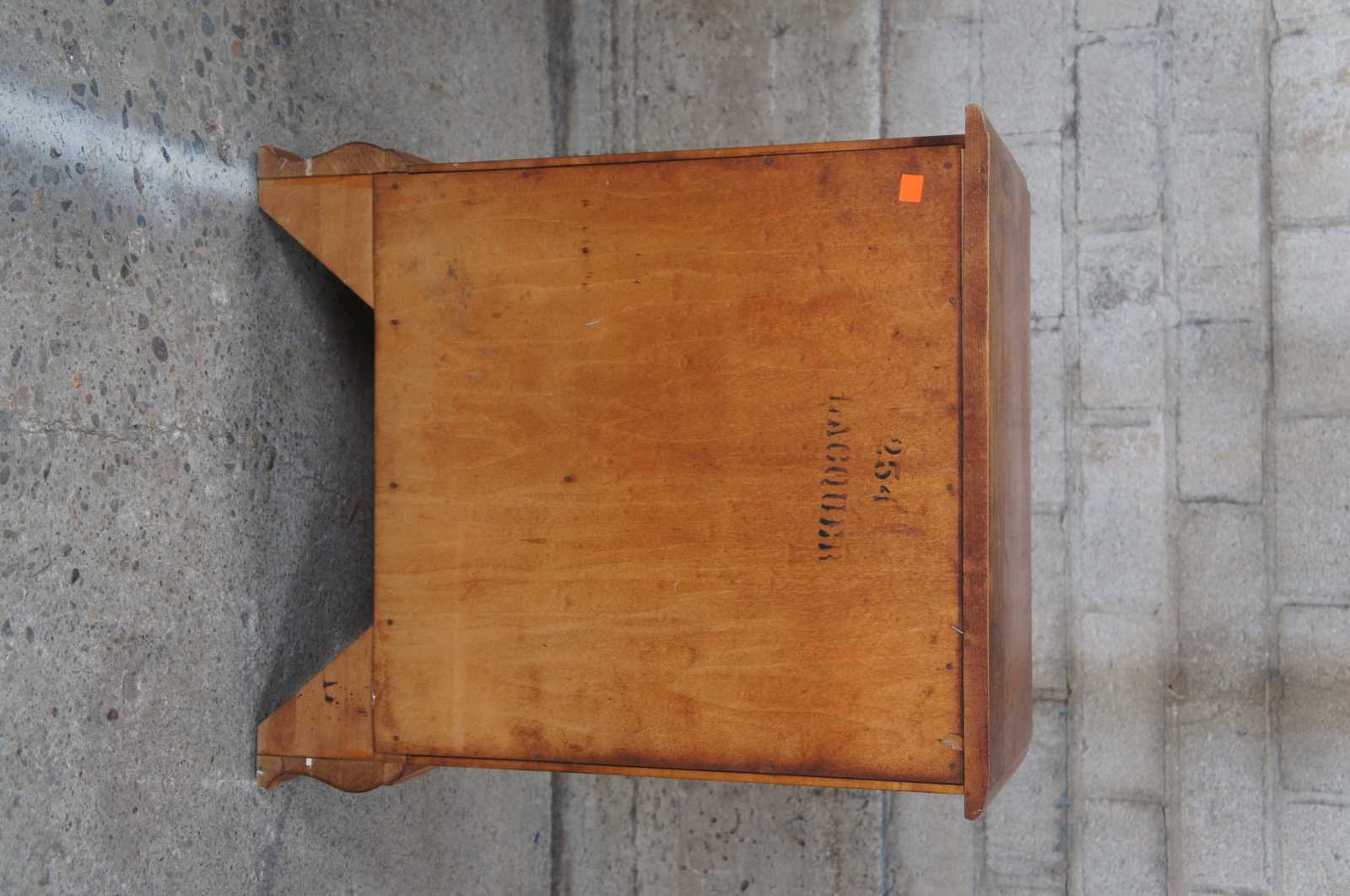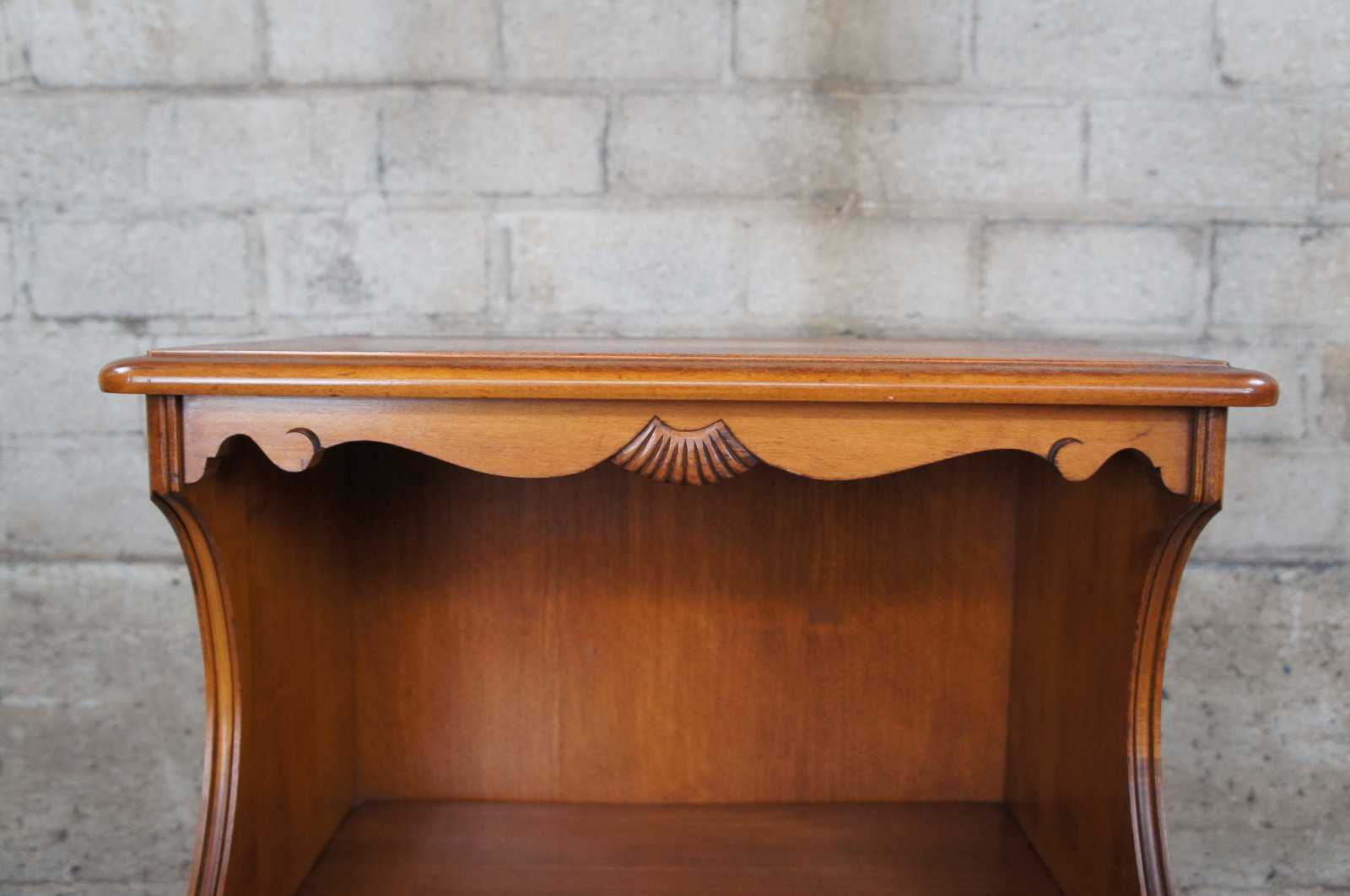 Vintage Kling solid hard maple nightstand or side table featuring serpentine form with a two tiered design with cubby and lower drawer.