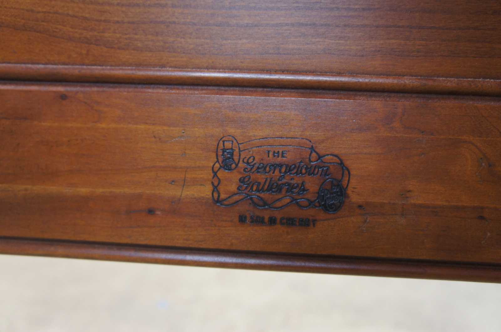 The company manufactured out of Huntington, West Virginia. As the name suggests, Georgetown Galleries focused on reproduction furniture from the Colonial era, 18th century and early American styles. They made mostly cherry and mahogany furniture and had an annual footprint of a million board feet of mahogany and half a million of cherry.