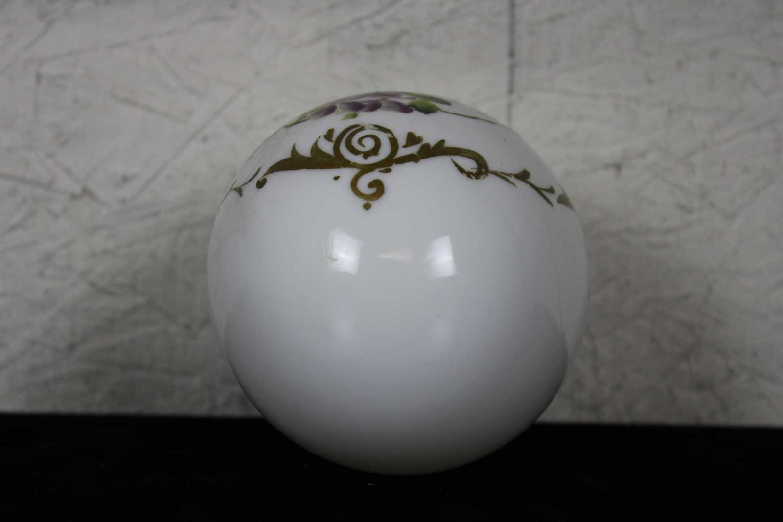 Antique hand blown Victorian milk glass Easter egg hand painted with violets and gold swirls.