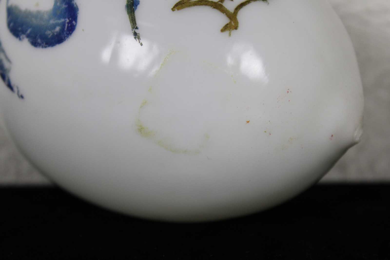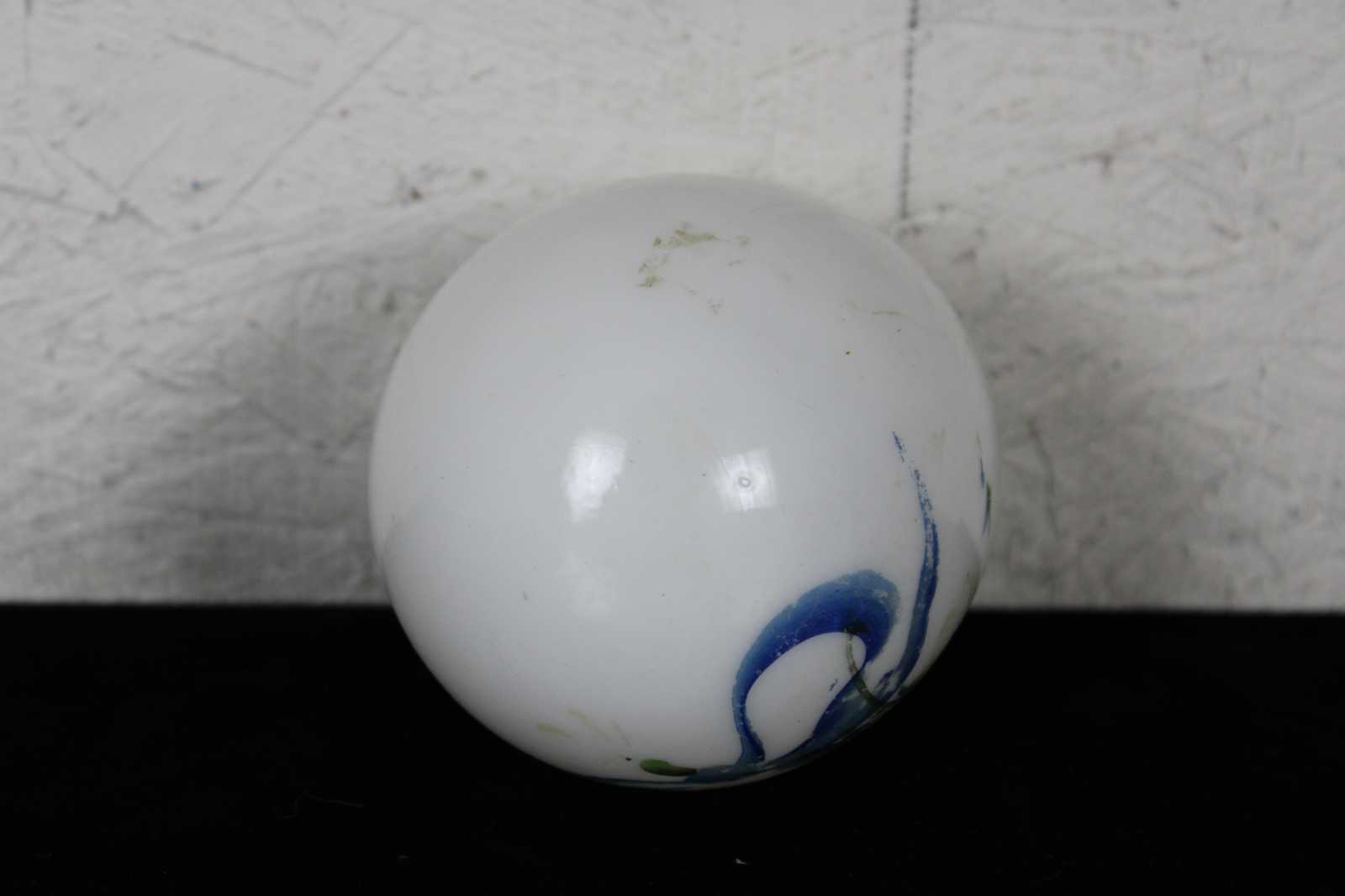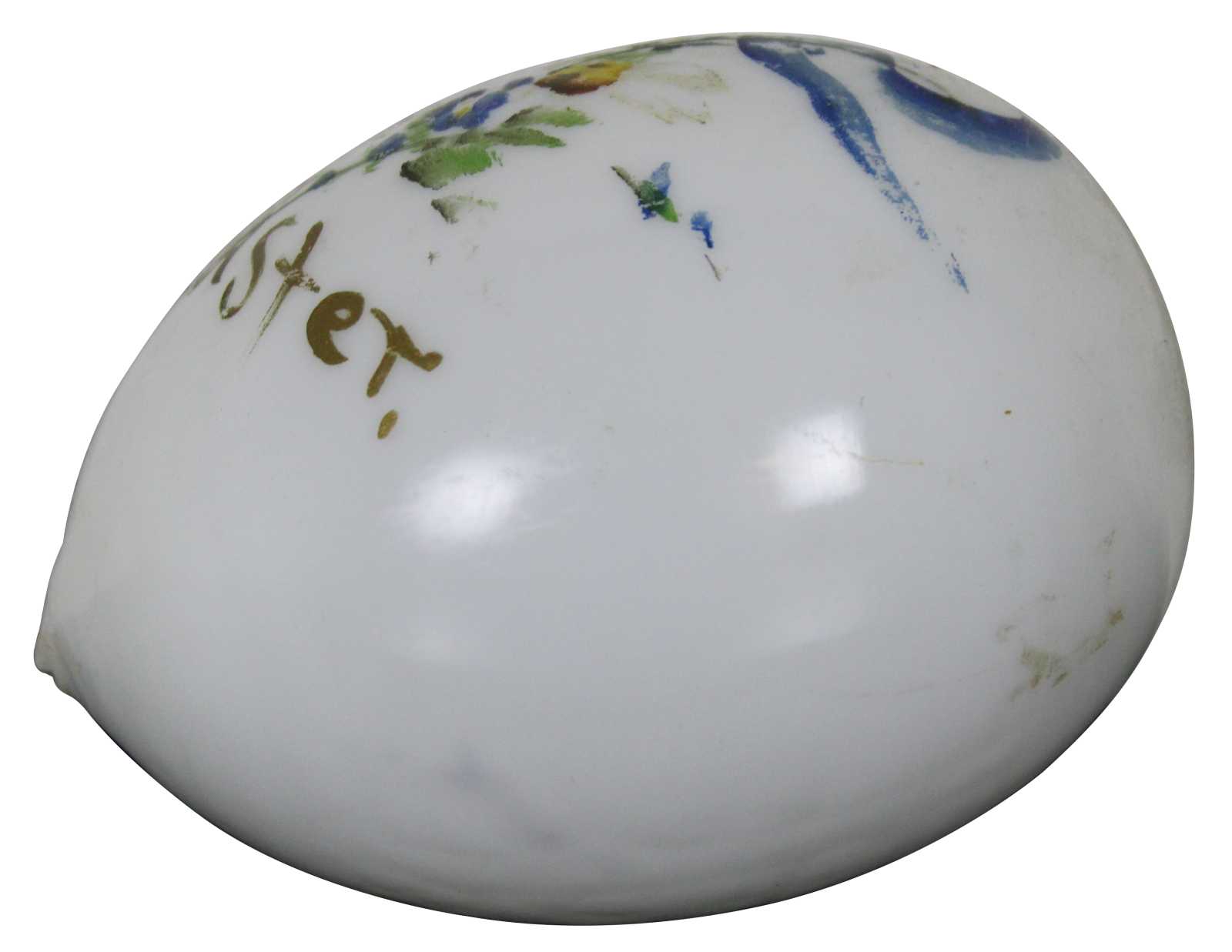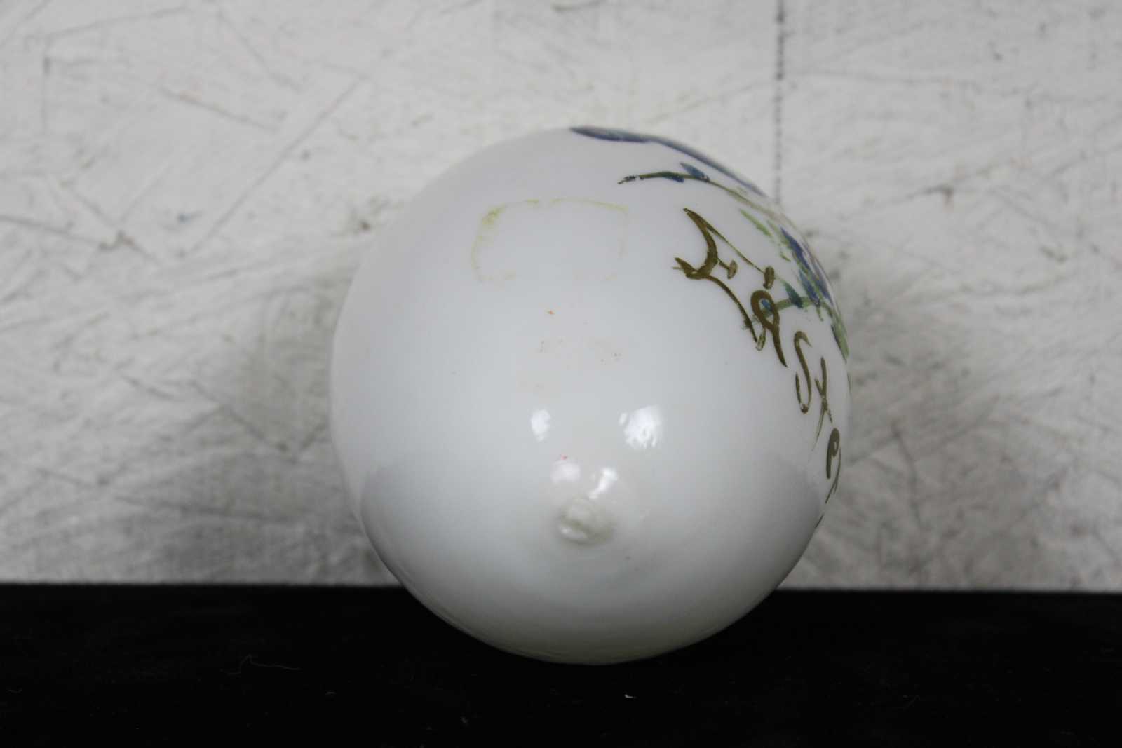 Antique hand blown Victorian milk glass Easter egg hand painted with a blue ribbon and flowers.