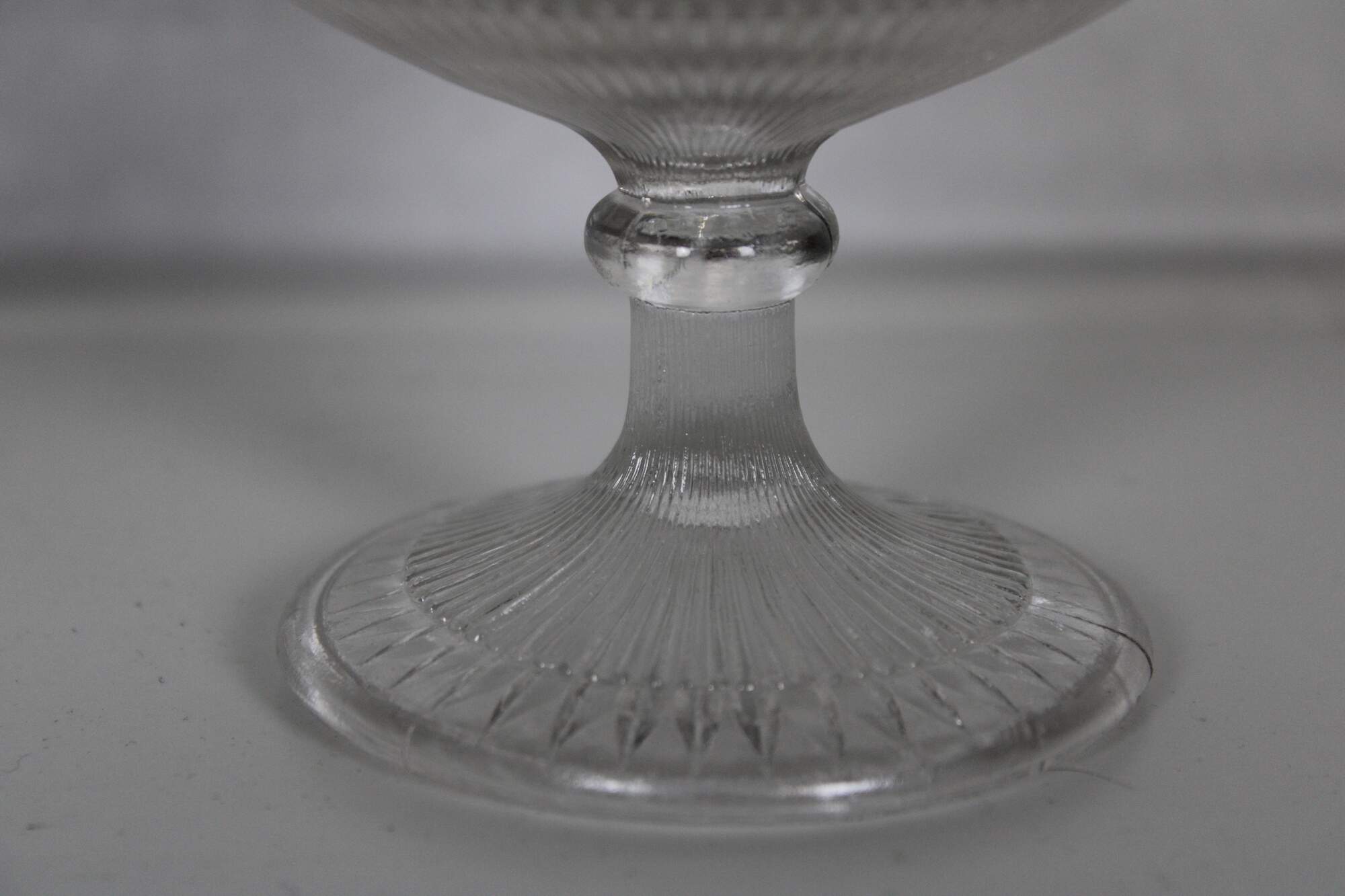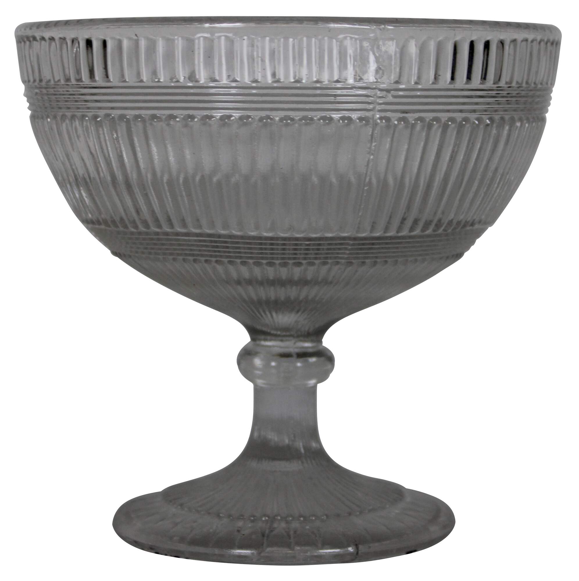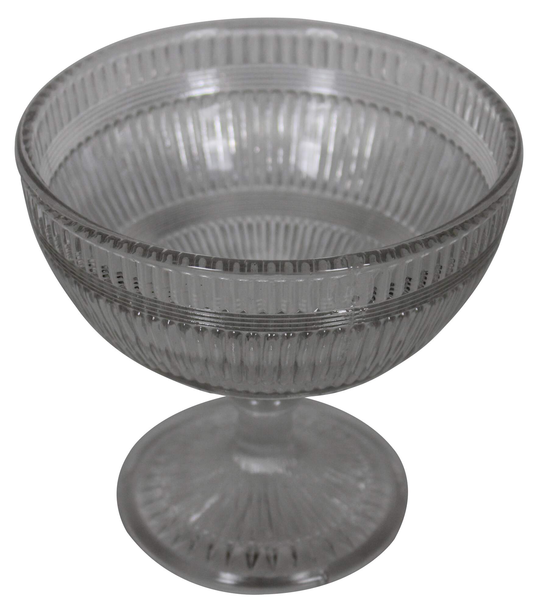 Vintage pressed glass footed dish, cup or bowl compote with ribbed / fluted sides and goblet form.
