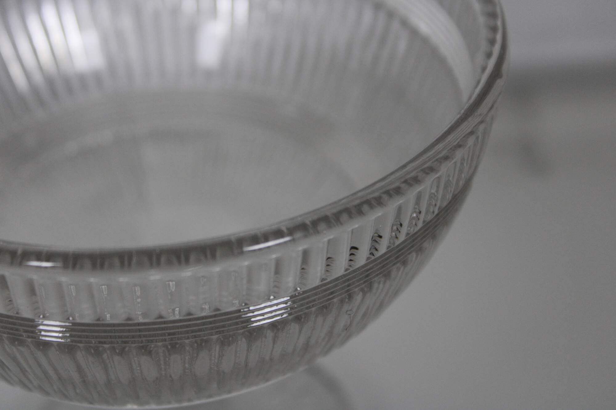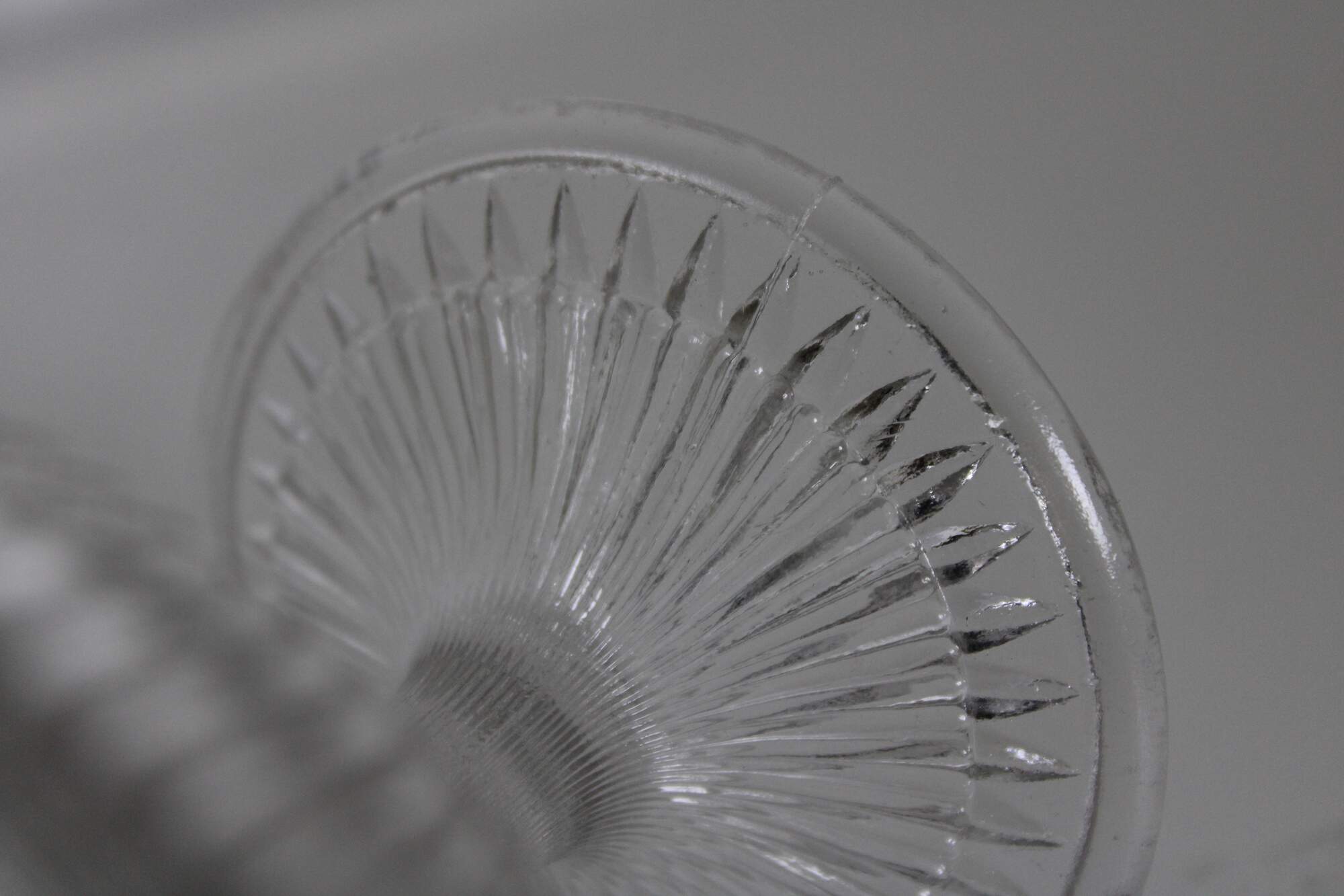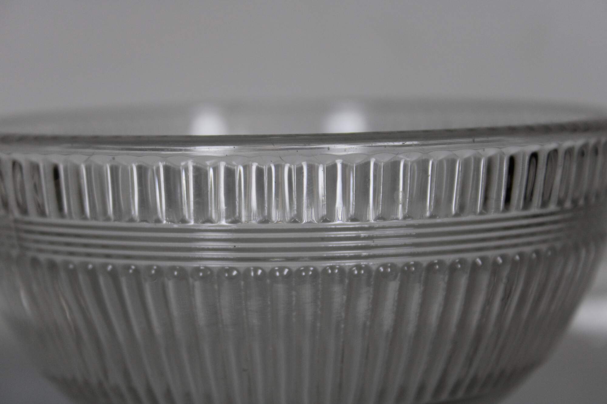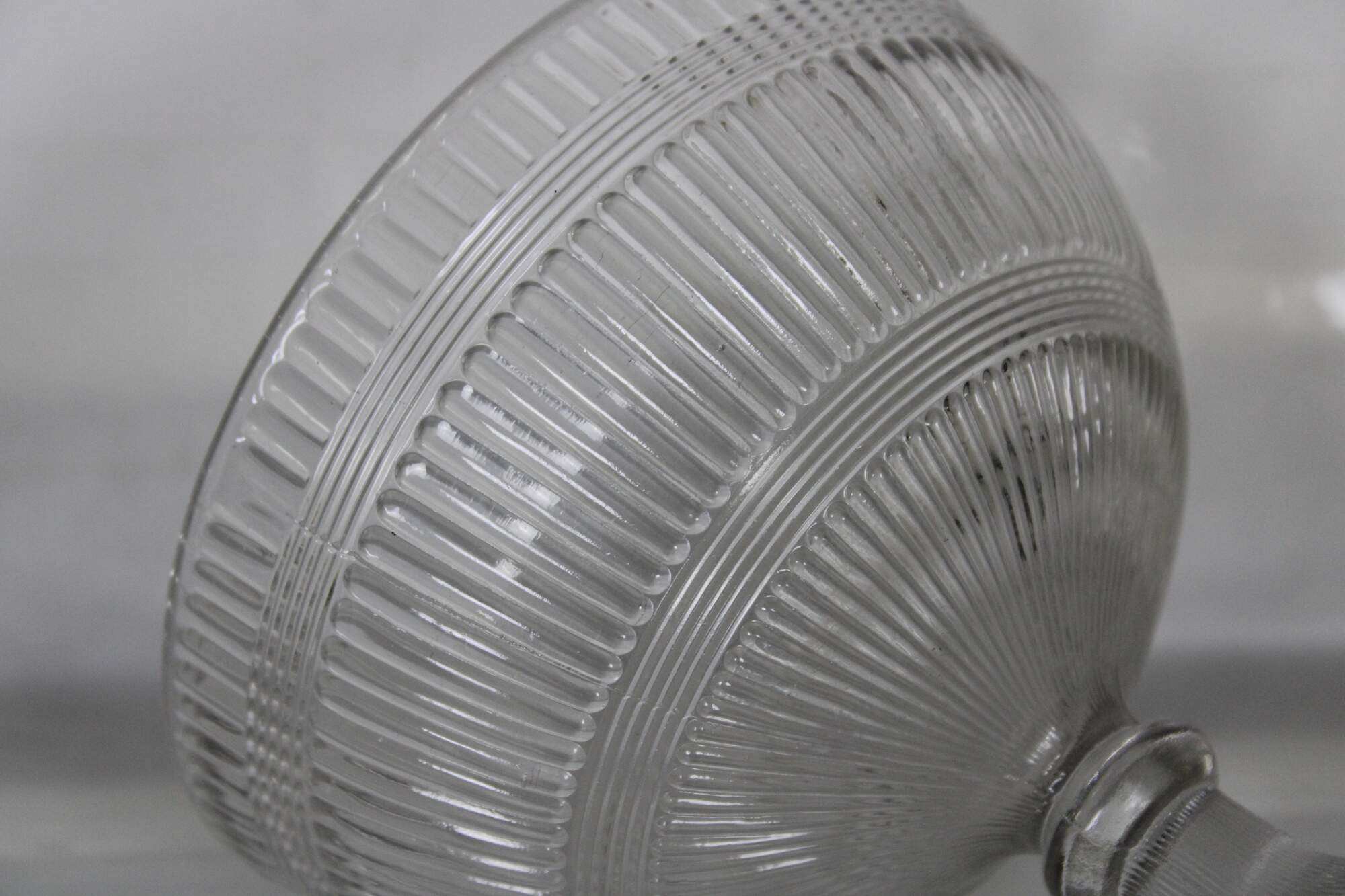 Vintage pressed glass footed dish, cup or bowl compote with ribbed / fluted sides and goblet form.