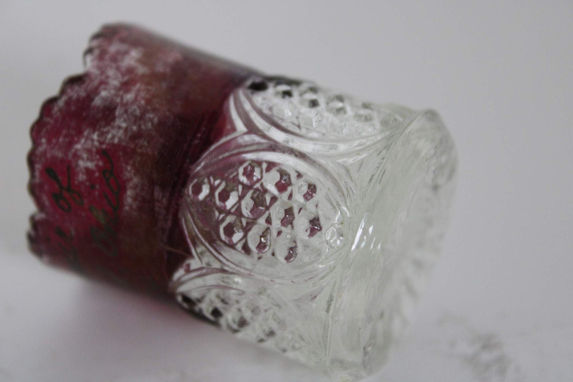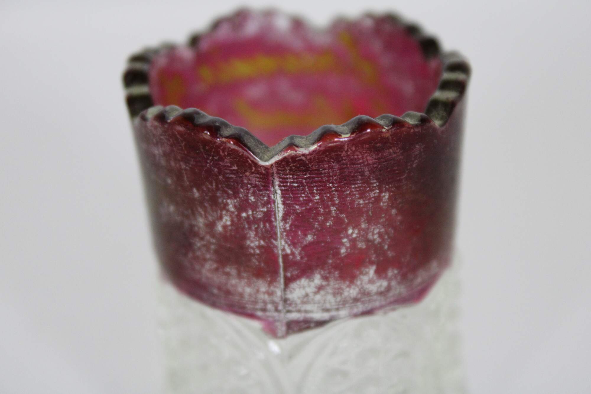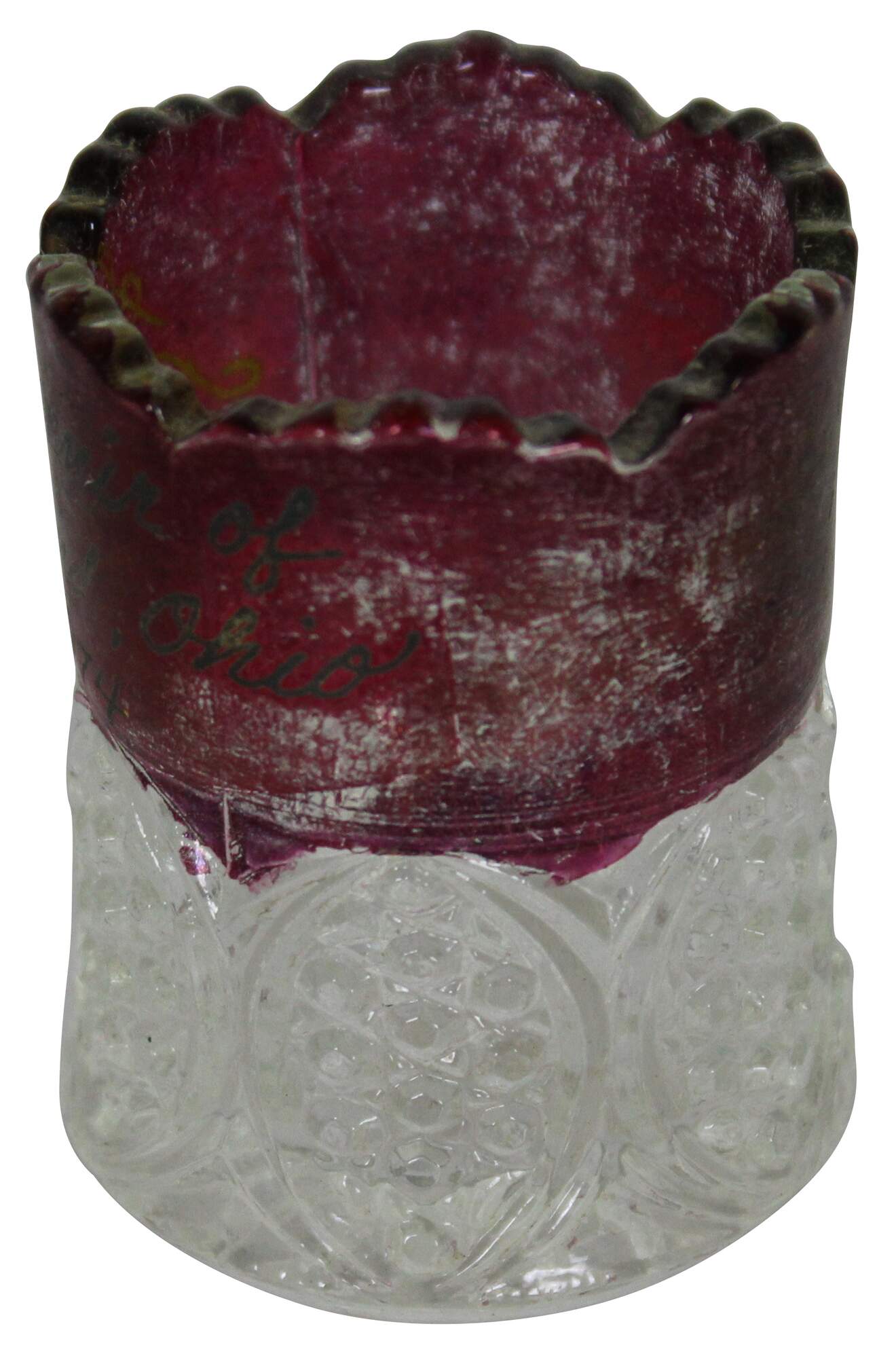 Vintage early American pattern ruby topped cut glass souvenir toothpick holder from Ashland, Ohio fair 1974.