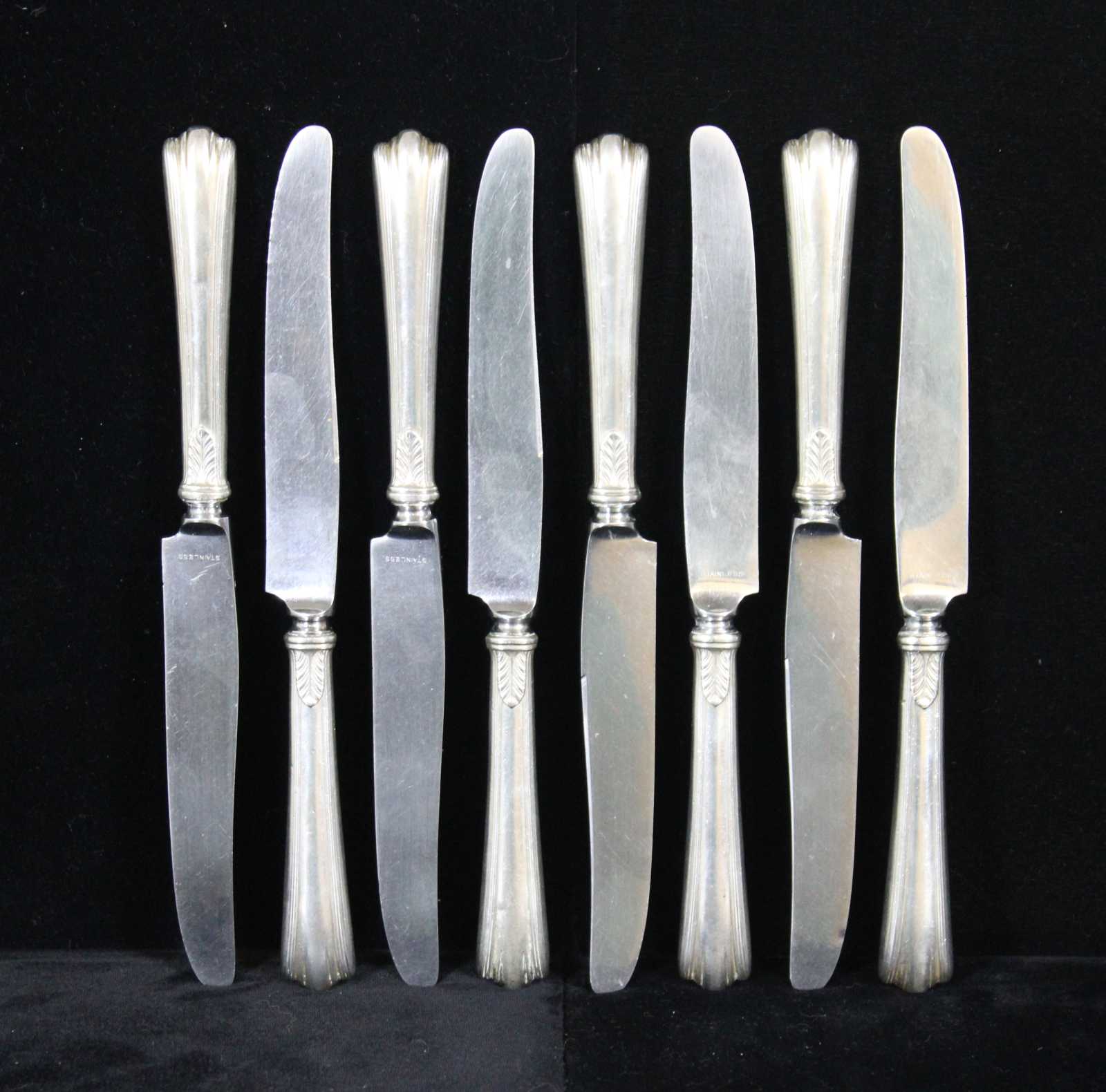 Antique 23 piece sterling silver flatware set by Lunt Silversmiths in the 1921 Treasure pattern. “Lunt Silversmiths began its activity and was incorporated in Greenfield, MA in 1902 as Rogers, Lunt & Bowlen Company.