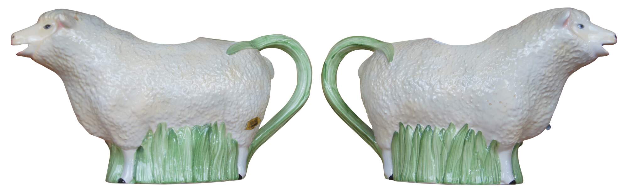 1992 Peaceful Kingdom Seymour Mann Sheep Pitchers, Hand Painted in France.