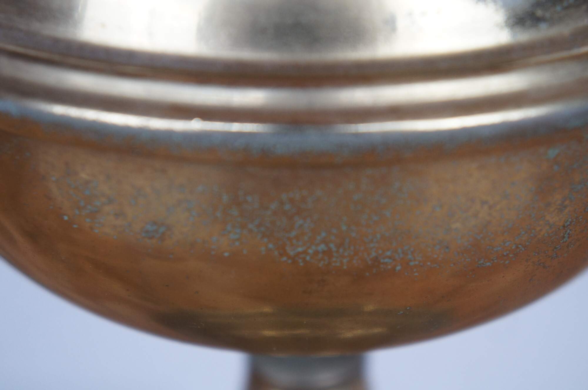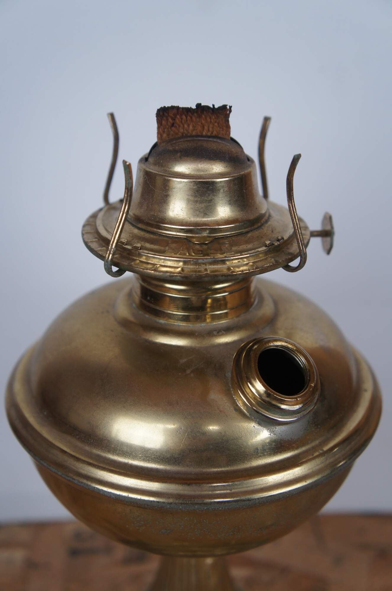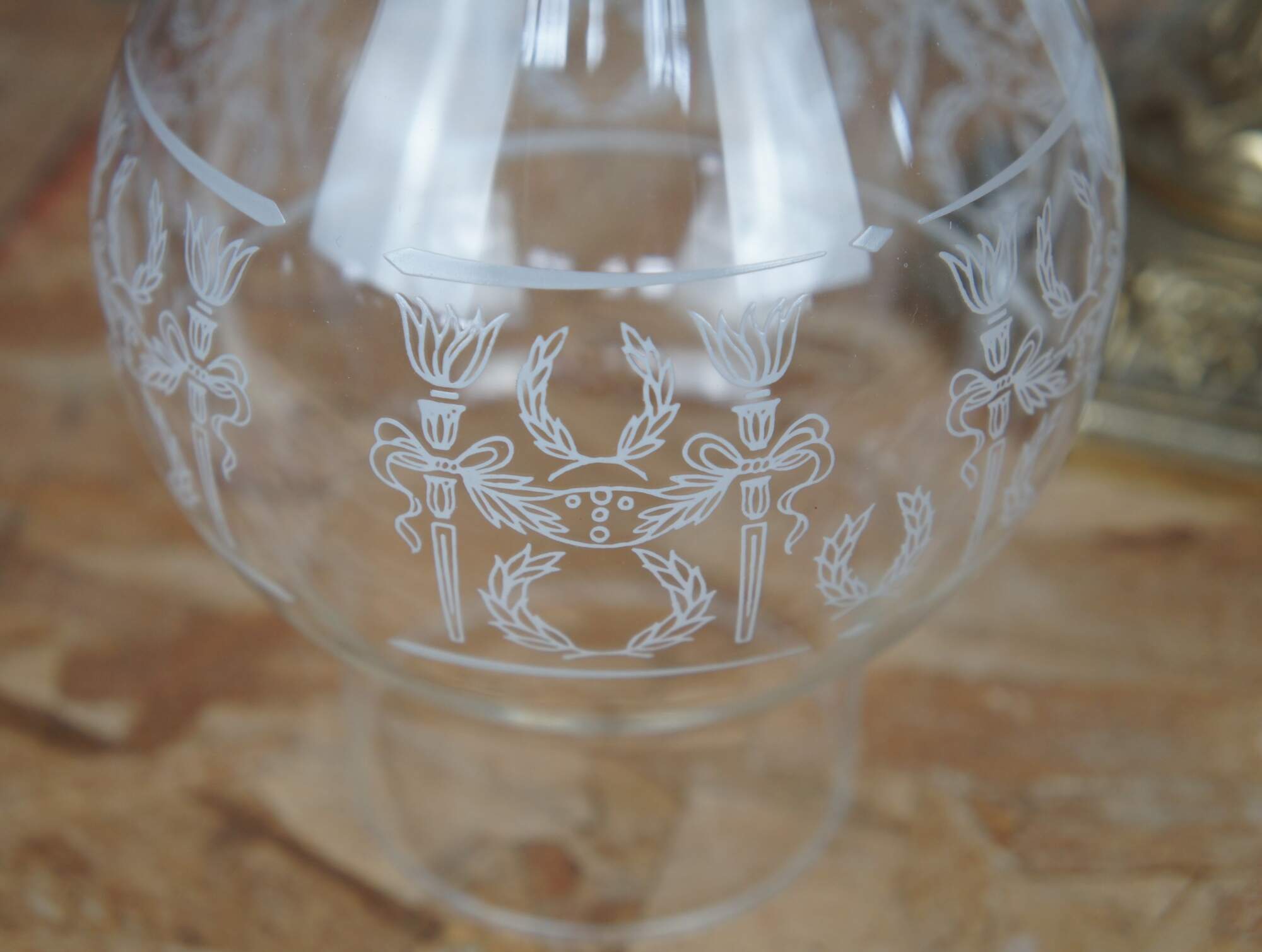 Oil/Kerosene/Paraffin lamp featuring shiny brass finish, fluted column and clear etched neoclassical style hurricane.