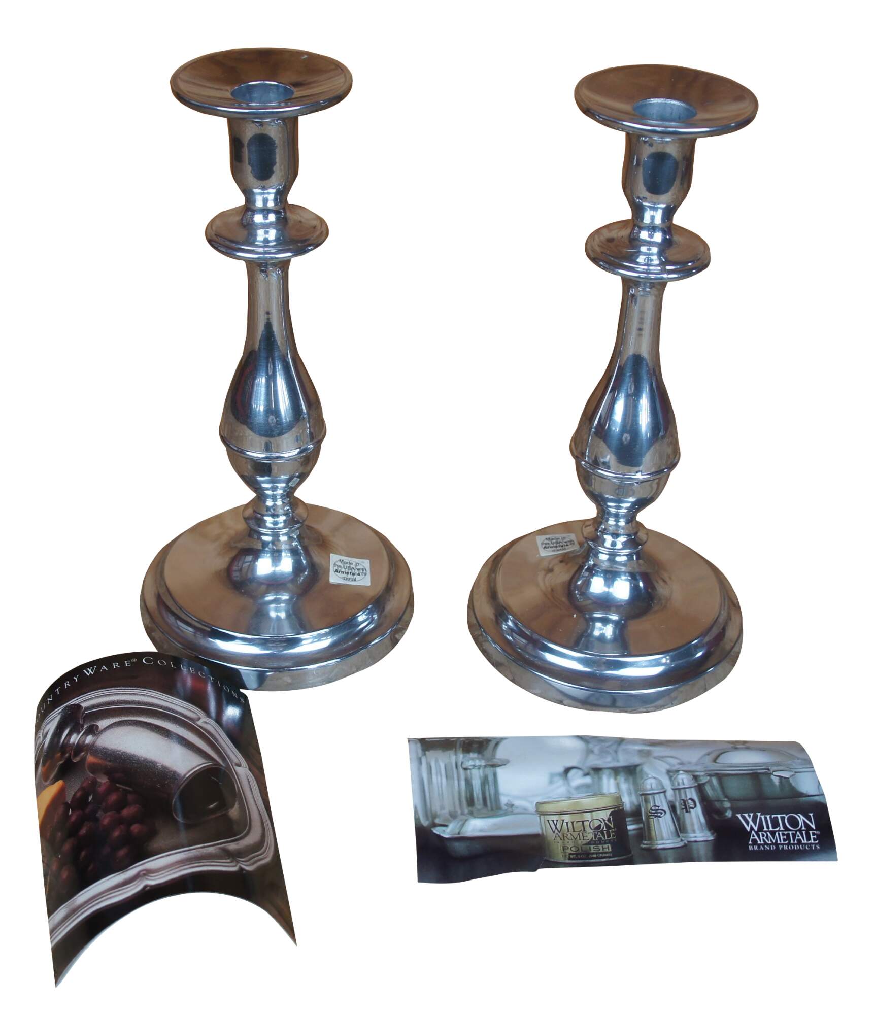 2 candlesticks by Royal Wilton Pewter in their plough tavern design featuring satin finish. These are new in original packaging.
