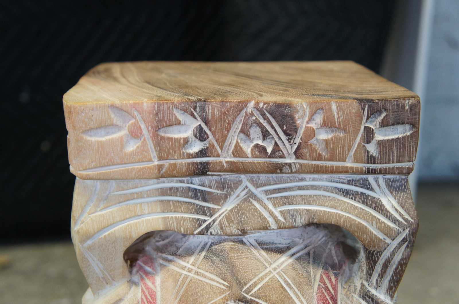 Vintage teak carved elephant garden stool, plant stand, side table or pedestal.