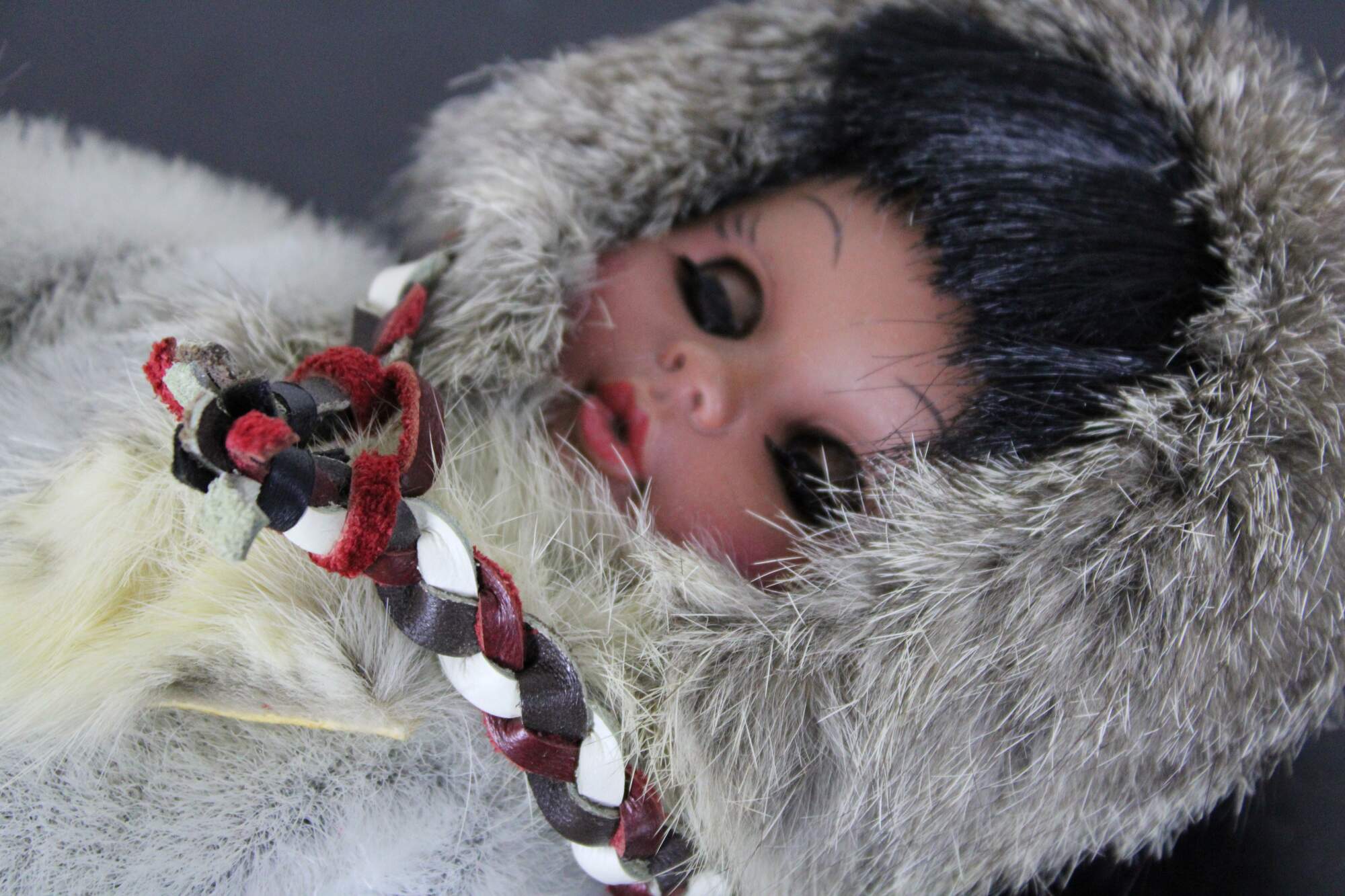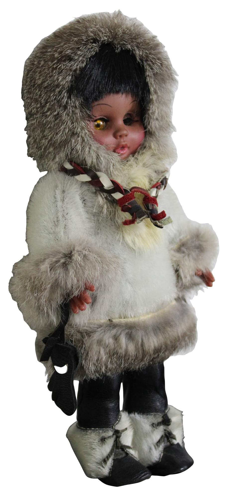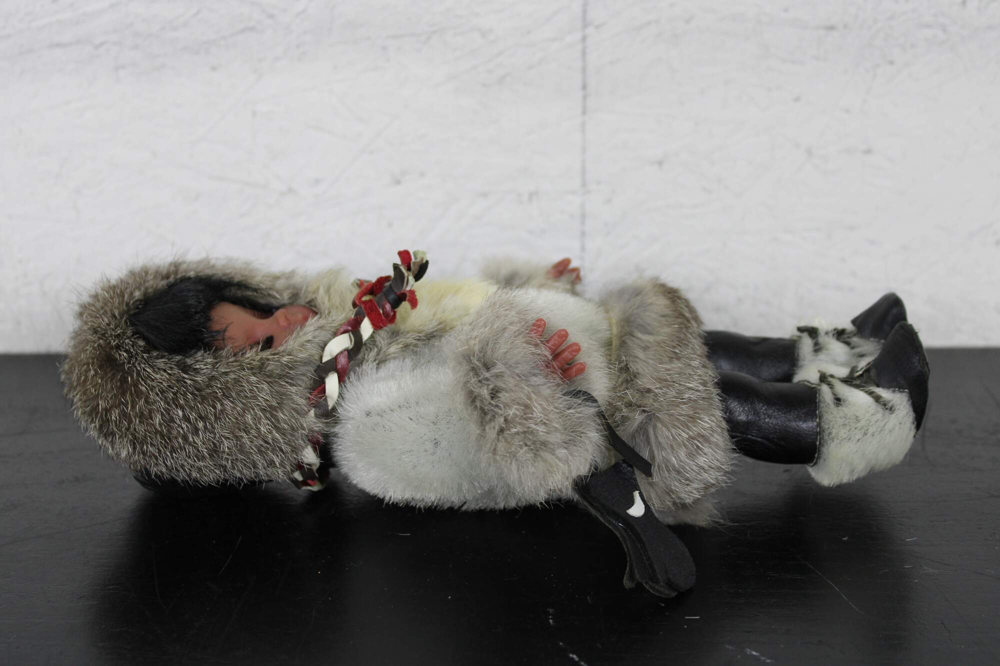 Vintage Inuit or “Eskimo” doll with sleep eyes, dressed in fur with leather boots.