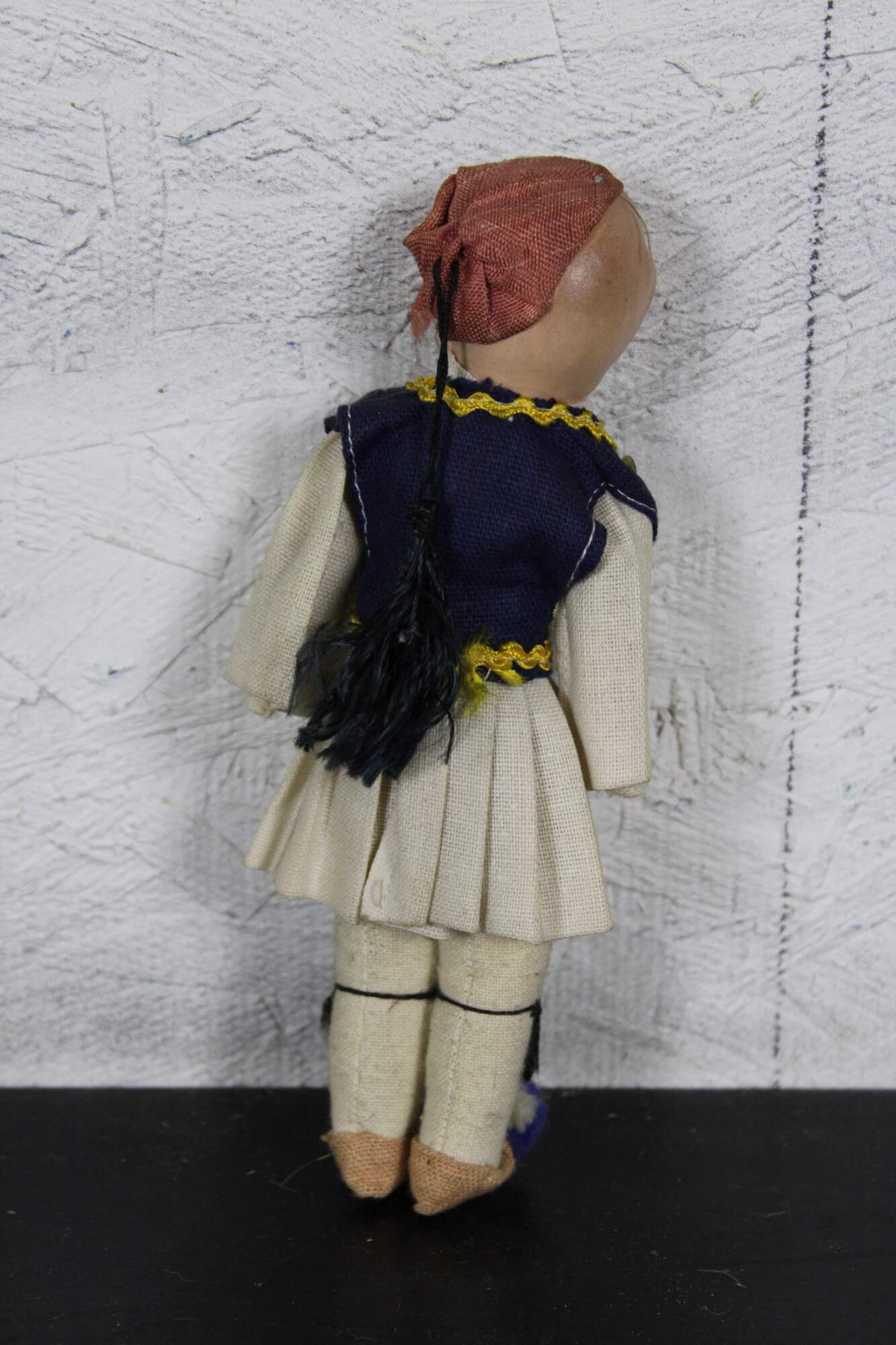 Antique composition head and cloth body Russian folk dress doll with hand painted features.