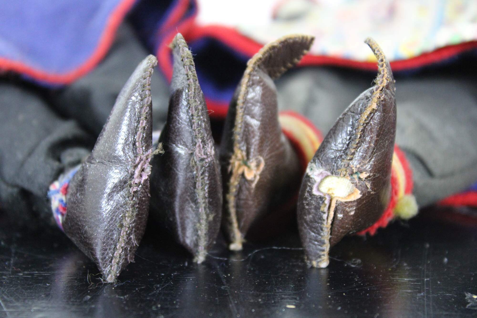 Pair of antique composition or paper mache head, cloth body dolls dfressed in the traditional folk dress of the Saami (Sami) people of the Lappland (Lapland) region of Finland.