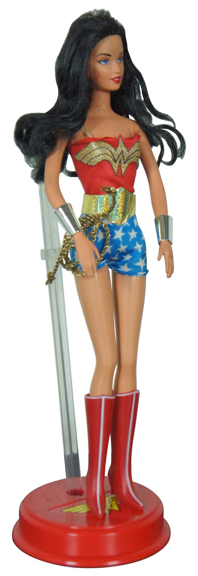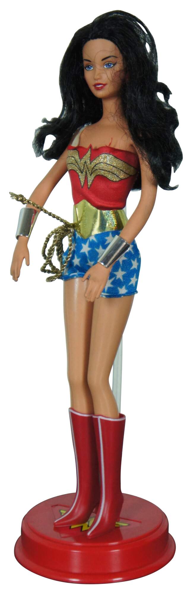 Barbie as DC Comic’s Wonder Woman, produced by Mattel in 2003. Includes original box and display stand.