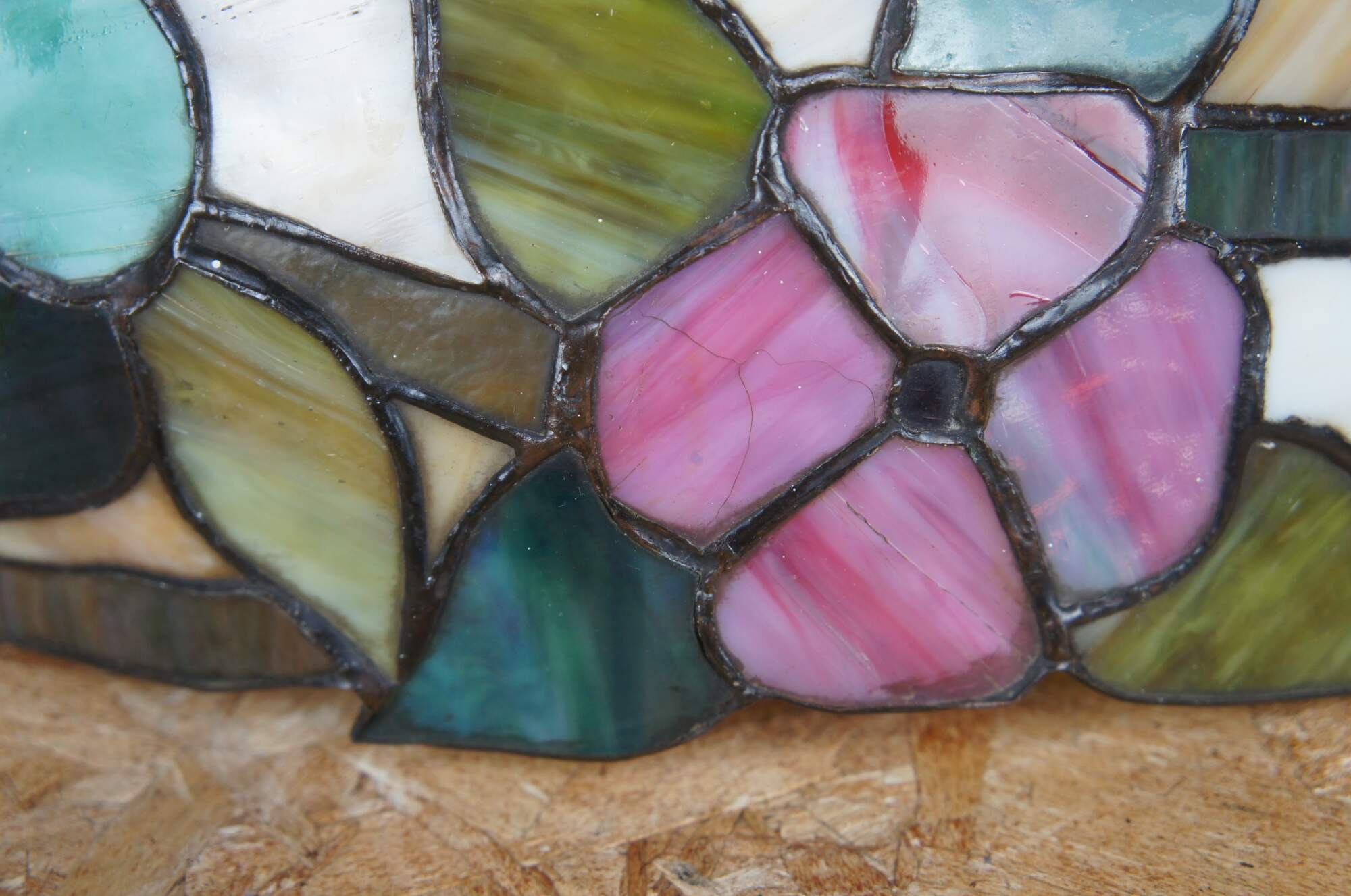 This hanging pendant Tiffany style stained glass lamp features florals in multicolors.