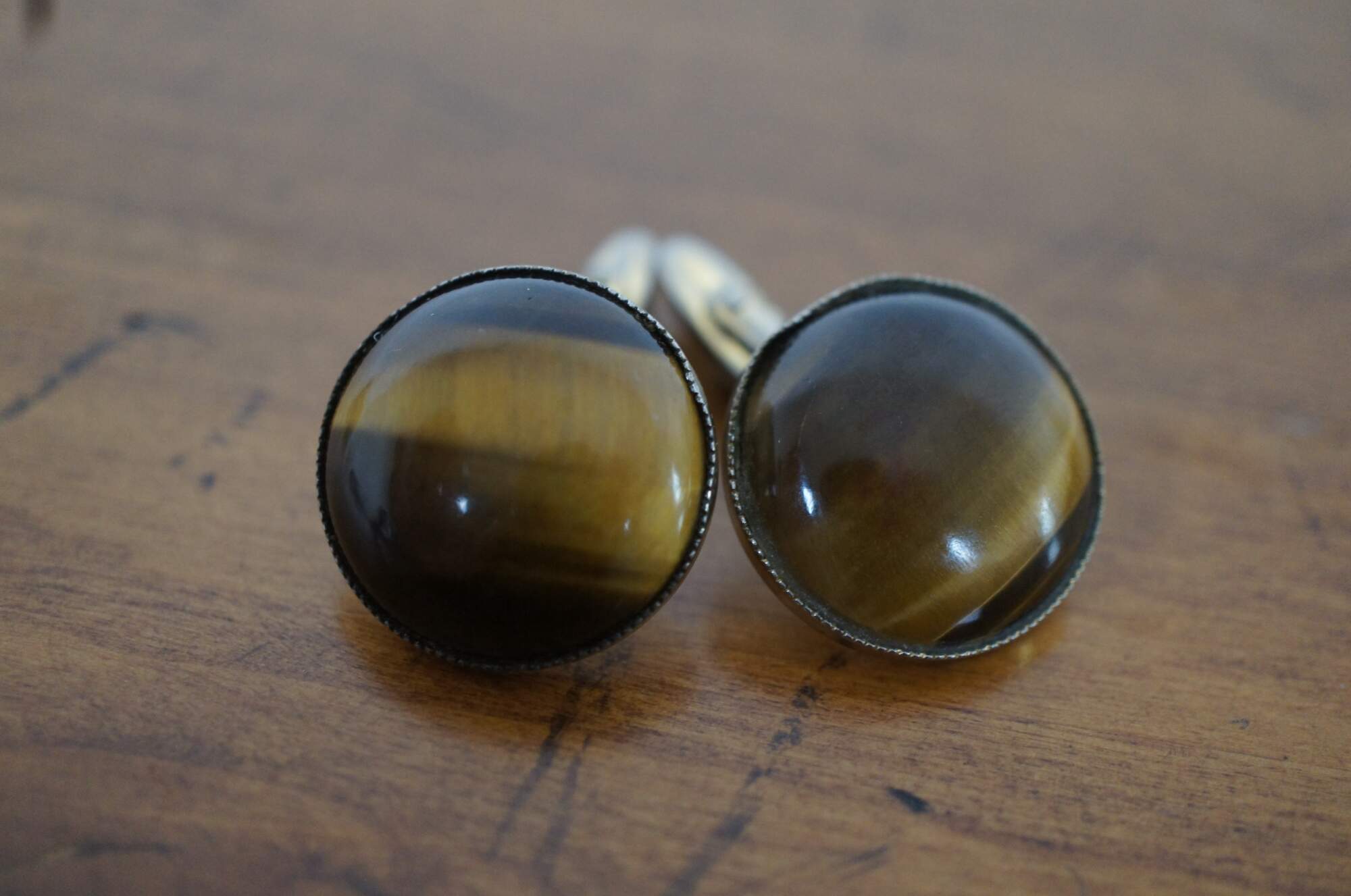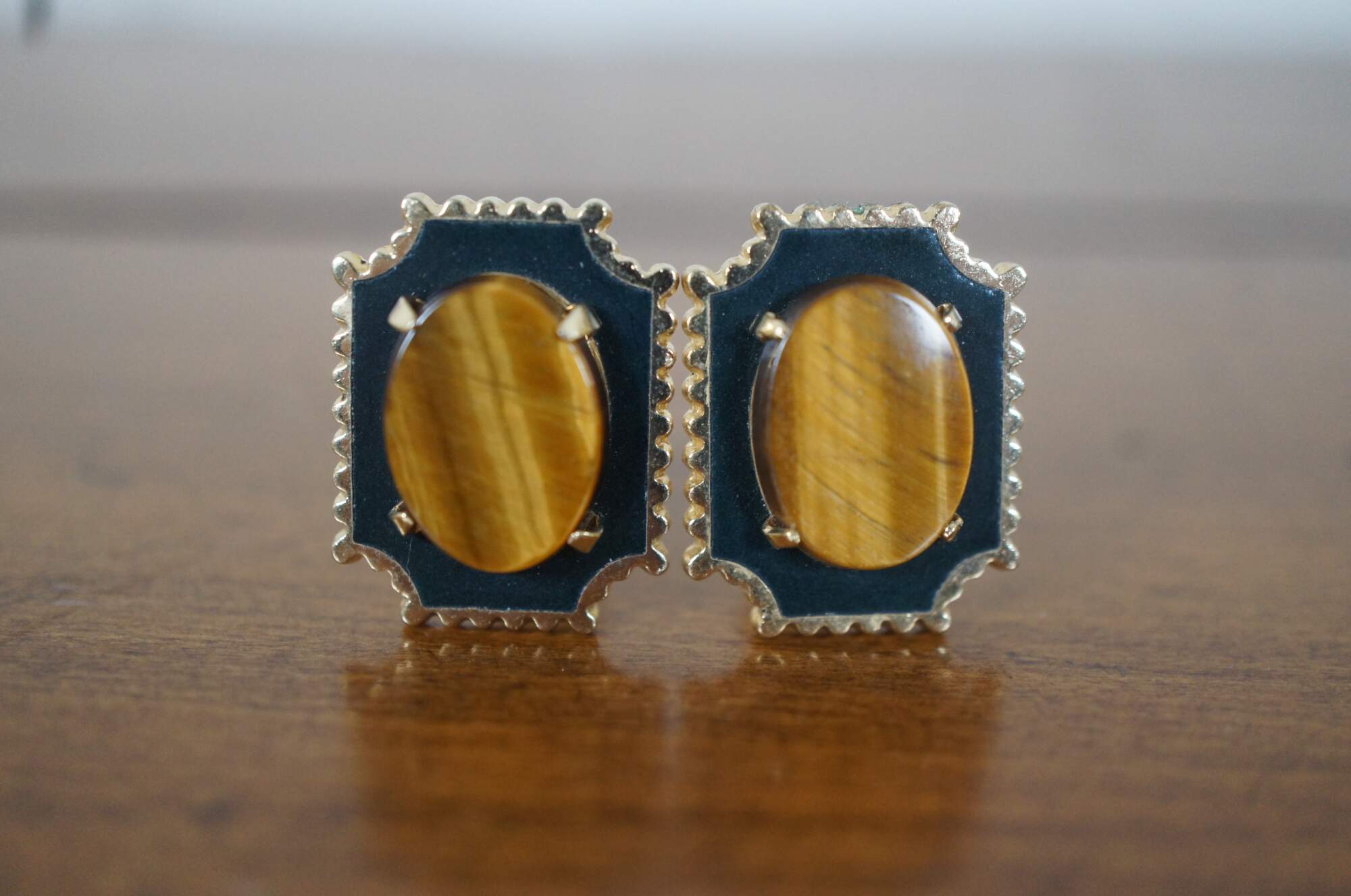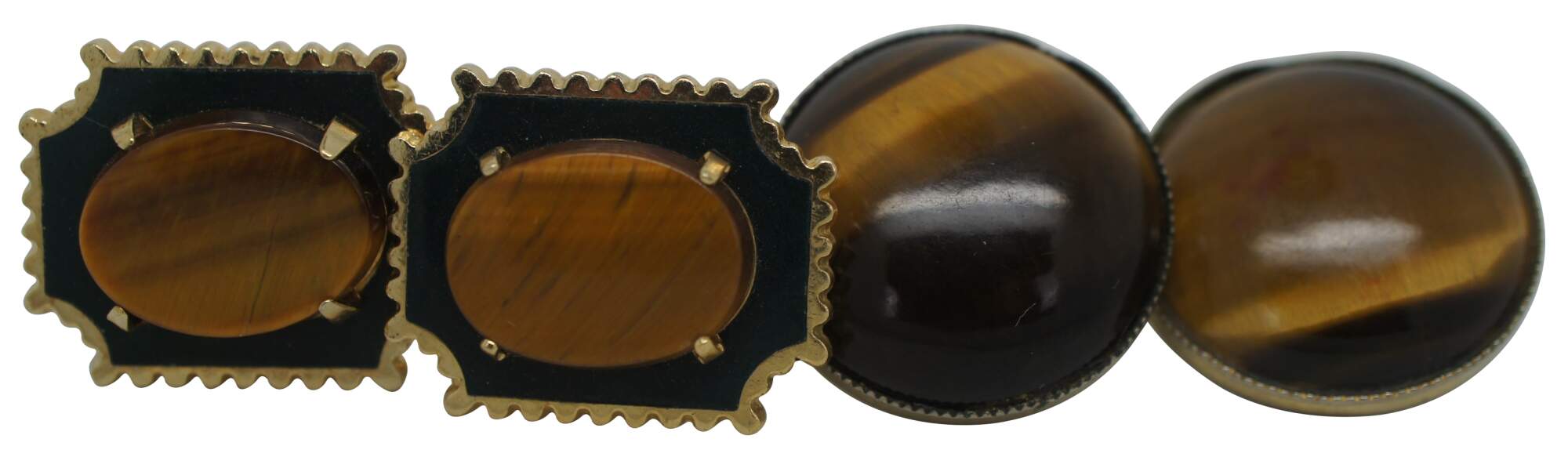 Four pairs of unmarked mid century vintage cufflinks, two of which feature tiger’s eye opal stones.