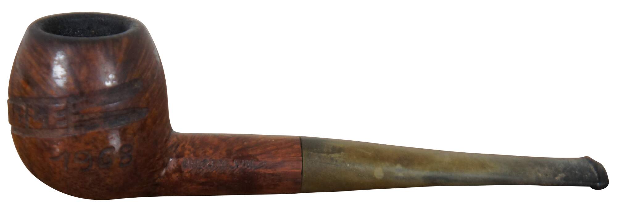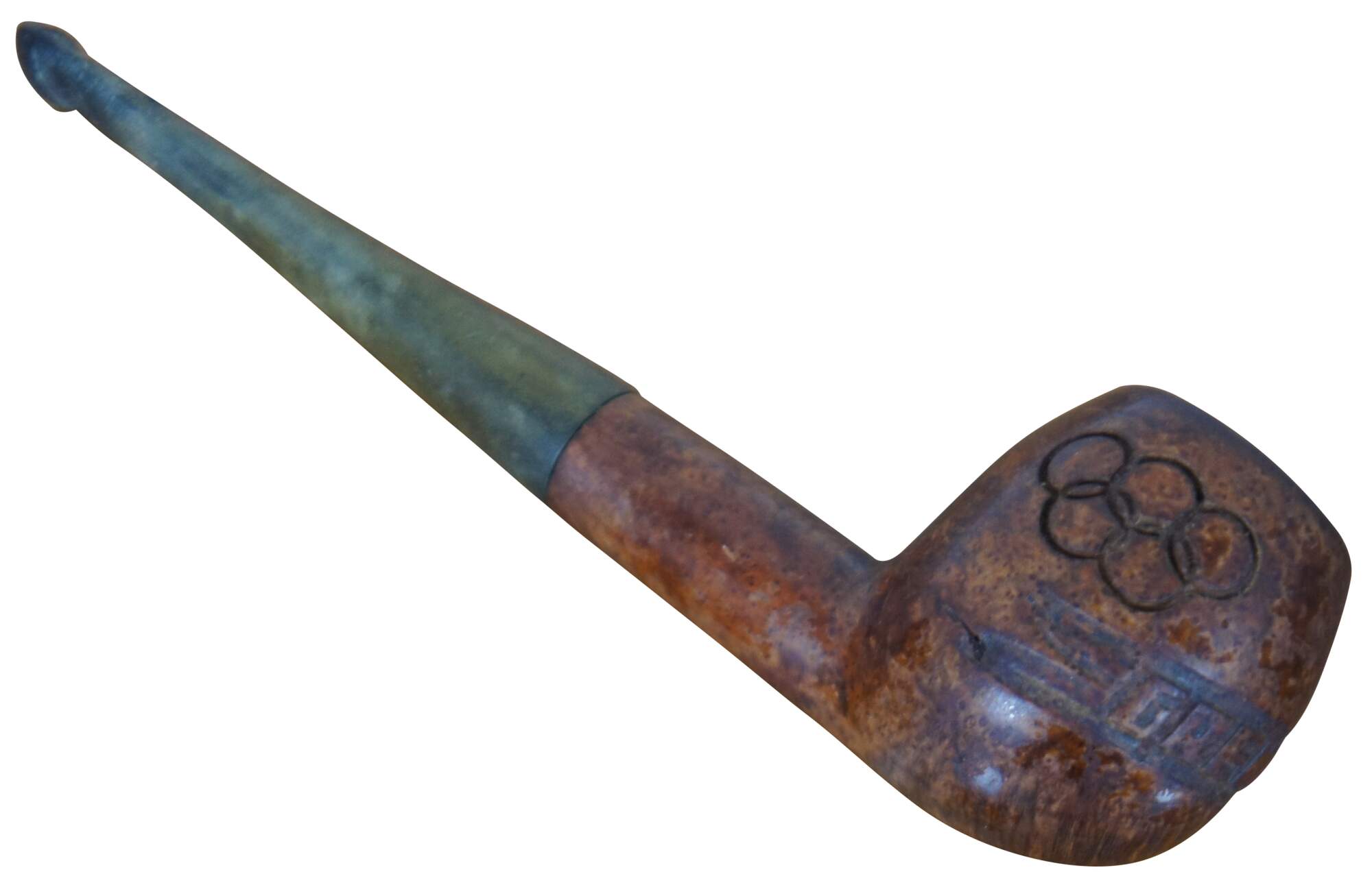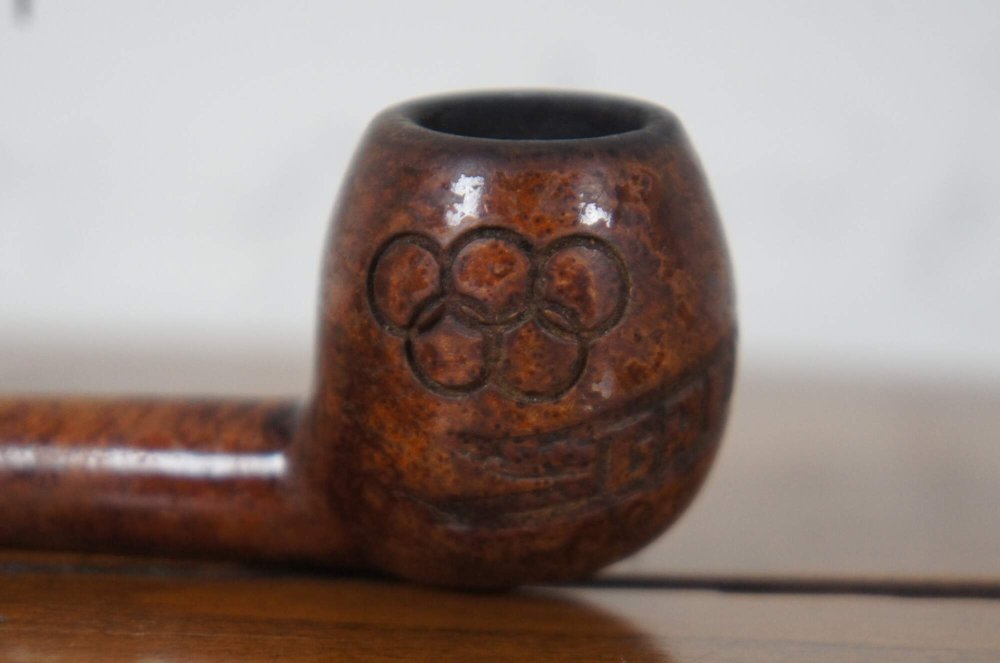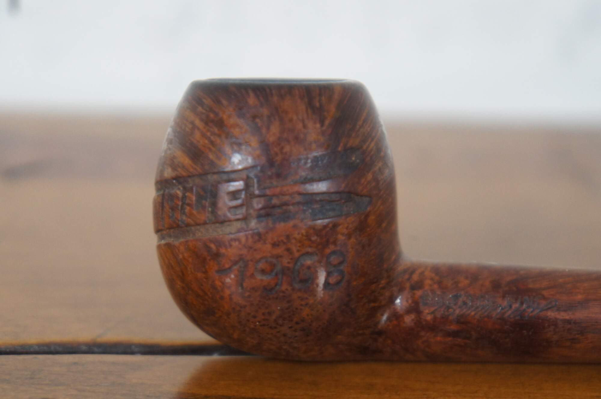 Vintage mid century briar pipe carved to commemorate the 1968 winter Olympic games in Grenoble, France; marked Bruyere Fine Armorial.