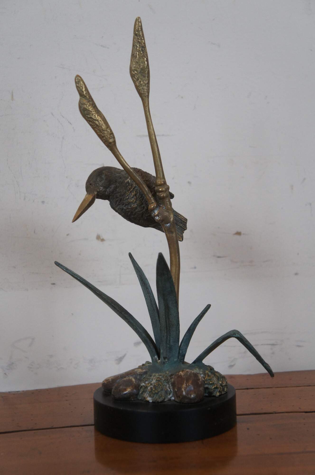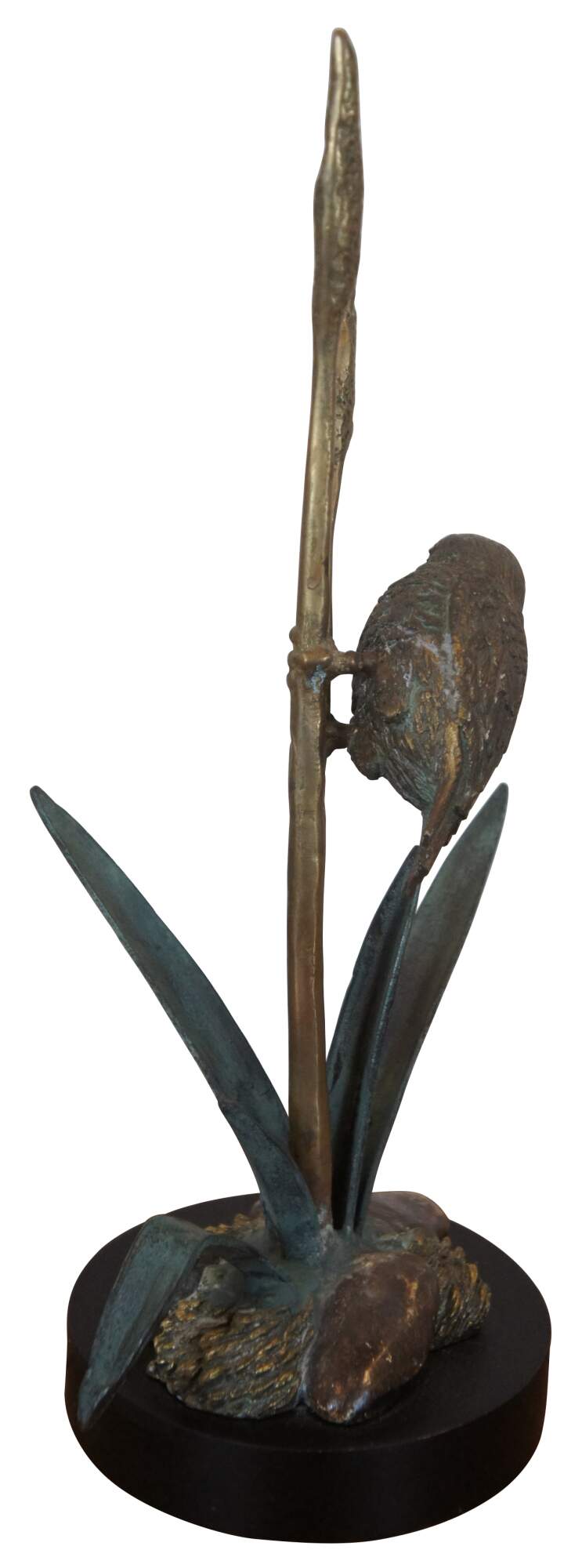 Vintge Andrea by Sadek brass sculpture featuring a perching bird on a reed. Attributed to a American Woodcock bird, 15367.