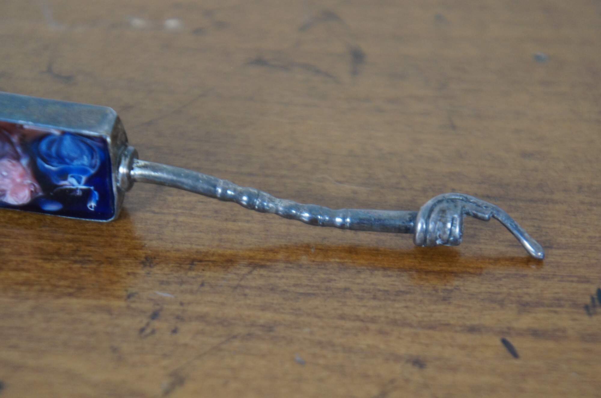 Vintage silver plate and blue marbled yad or Torah pointer, embellished with a Star of David and carrying chain.