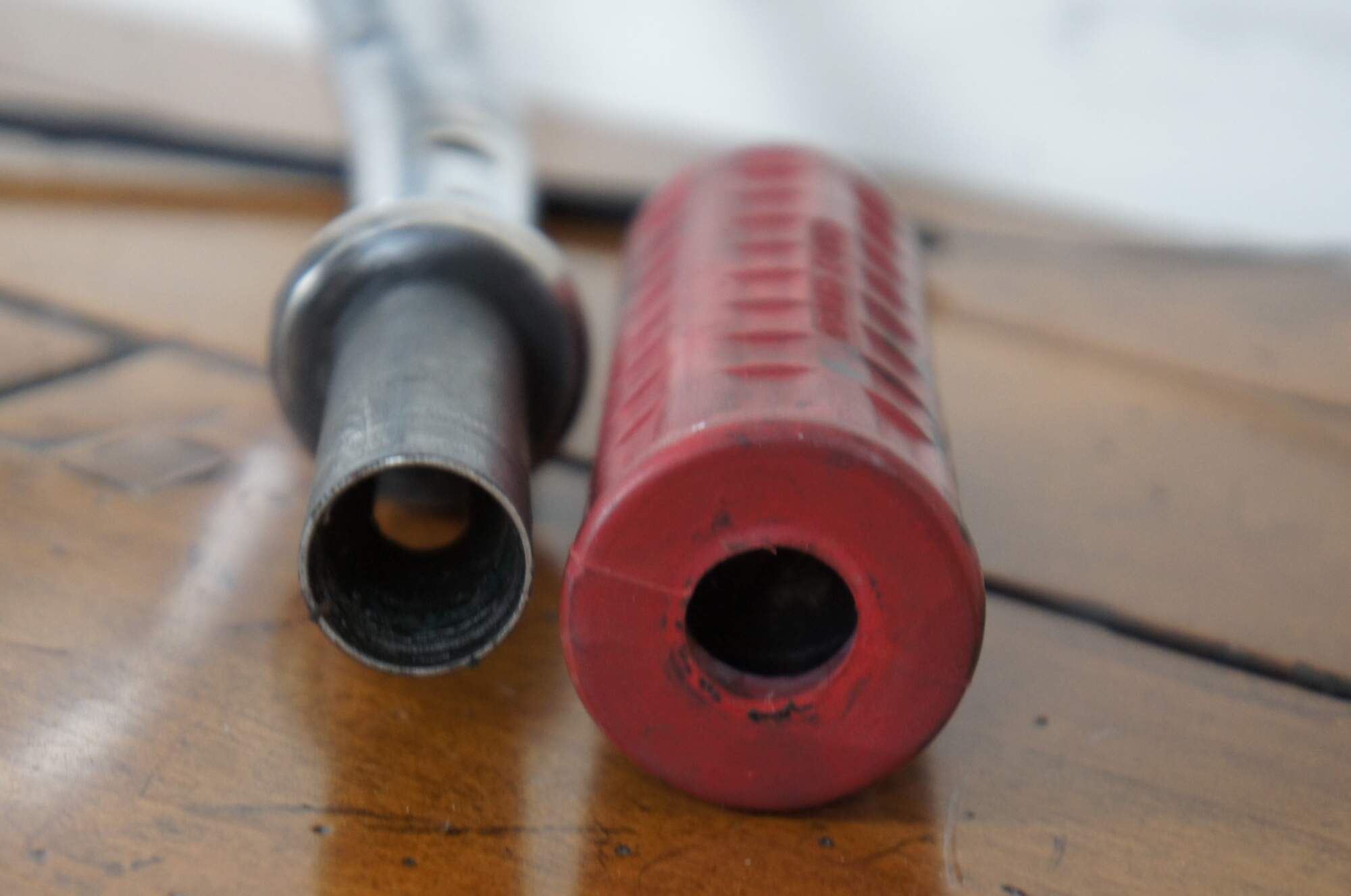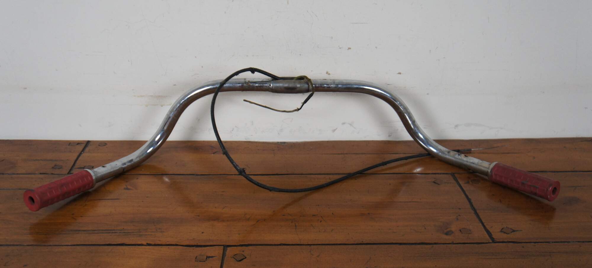 Vintage Harley - Davidson Panhead or Knucklehead handle bars with control wires and red rubber grips. 1949-1960. Originally purchased in the 1980s from the Pennsylvania warehouse where a cache of old Harley parts were discovered.