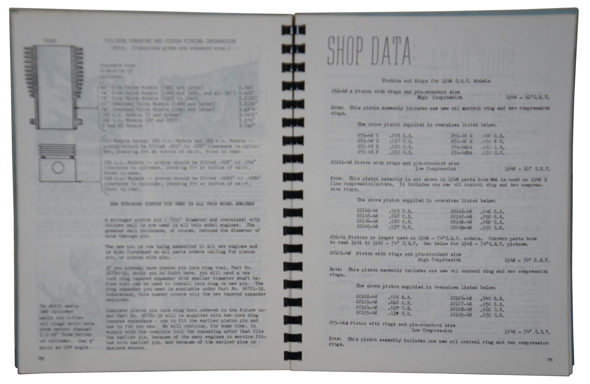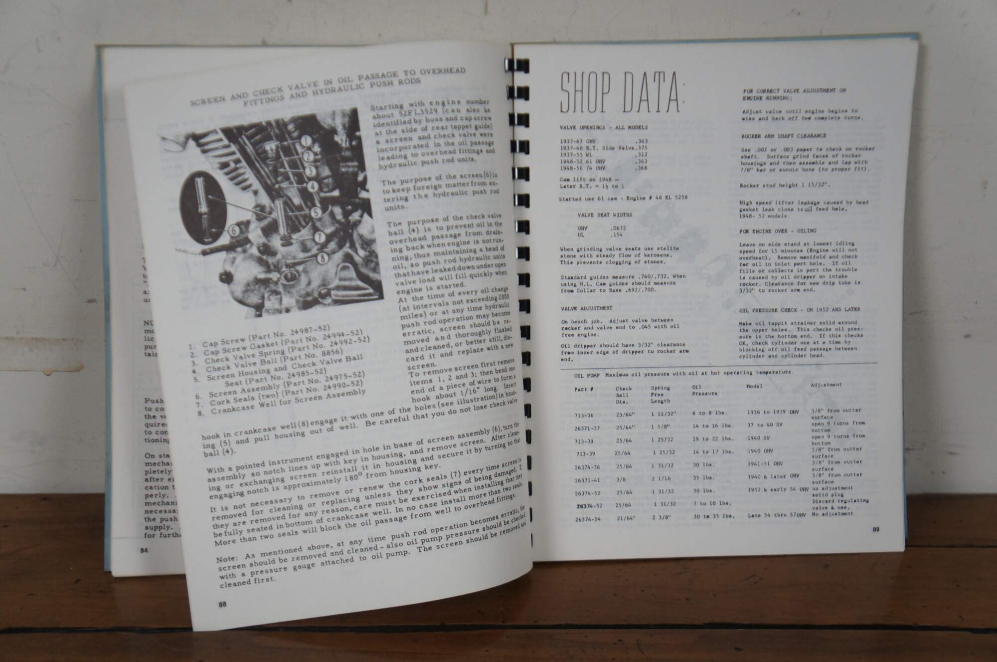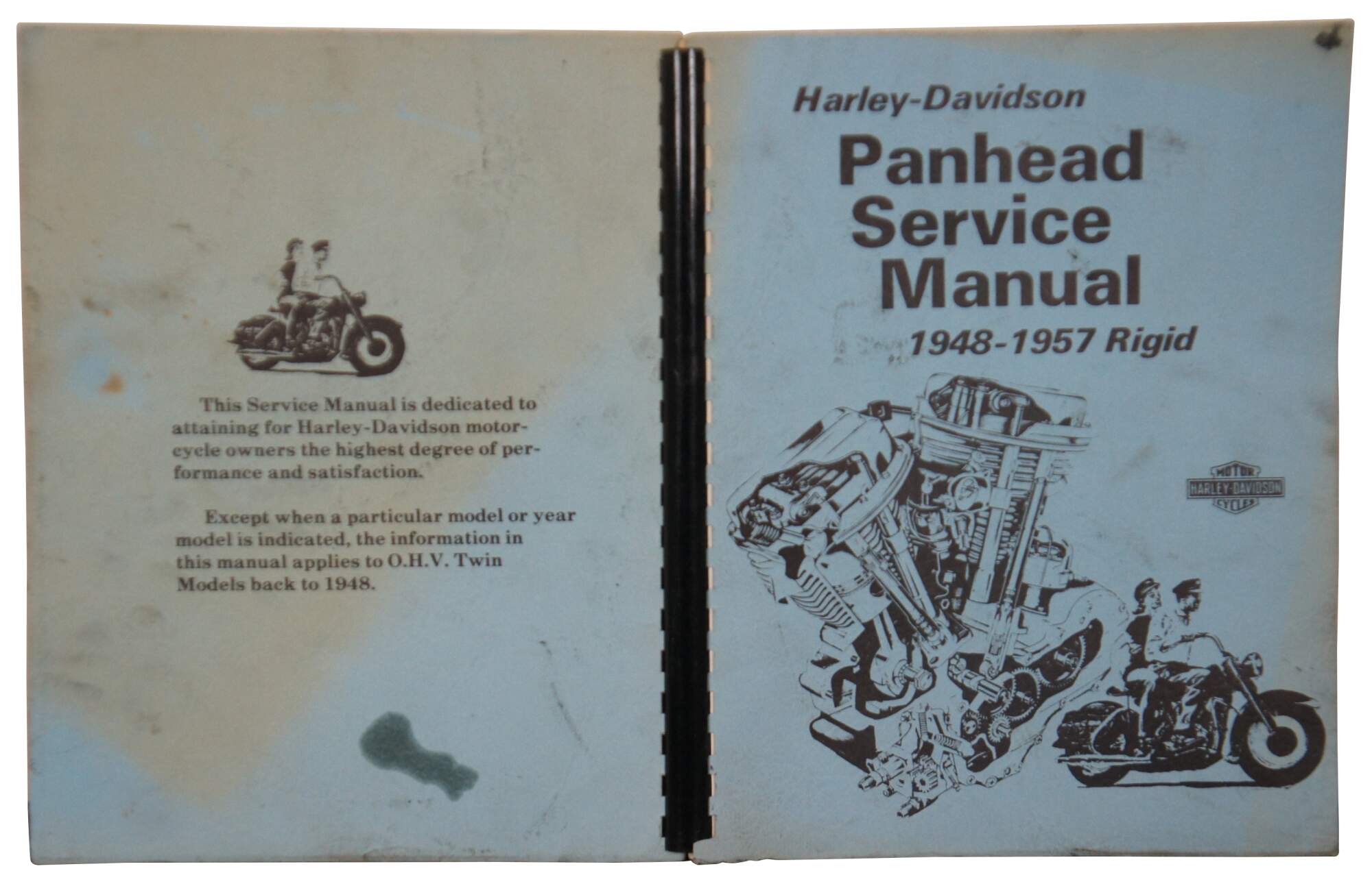 Vintage comb bound copy of the Harley-Davidson Panhead Service Manual: 1948-1957 Rigid, applying to OHV Twin Model motorcycles going back to 1948. A rare find as most of these are the latter copy with standard binding. Originally purchased in the 1980s from the Pennsylvania warehouse where a cache of old Harley parts were discovered.