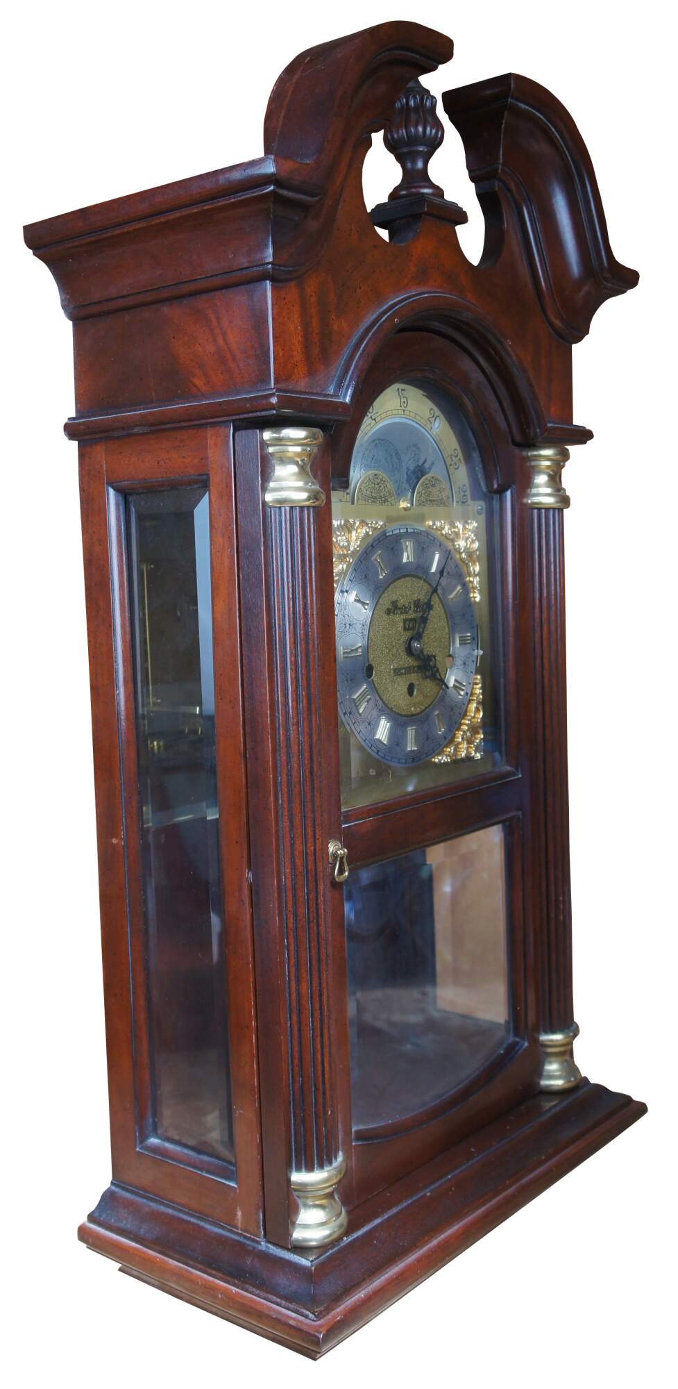 Ltd. Edition Howard Miller Chiming Clock: marked Limited Edition 778, Style 143, Model no.612-333. Selection 3 tunes: Westminster, St. Michael, Whittington. In a mahogany case with secret compartment along the bottom