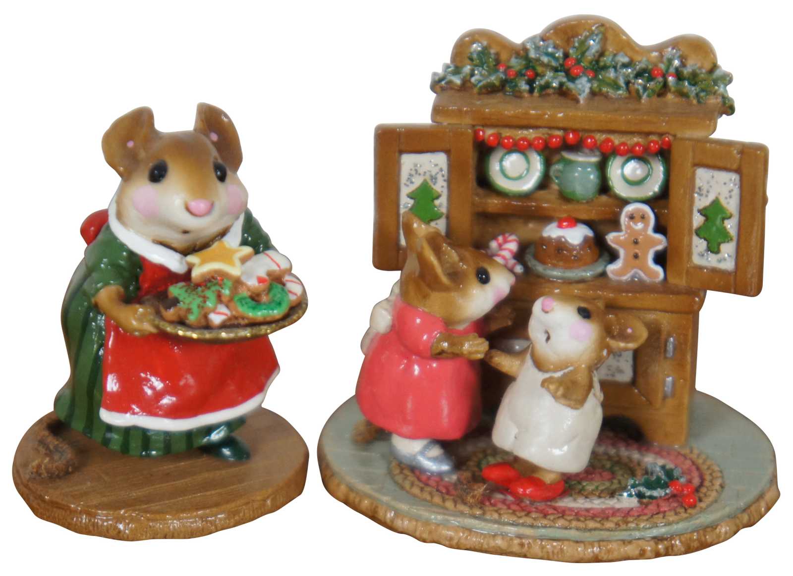 Set of eleven Wee Forest Folk Christmas themed figurines, five initialed by Donna Petersen, four by Annette Petersen, and two by William Petersen. Set includes Jenny’s Jam and Jellies M-256, Wreath Maker M-231, The Nutcracker M-174, Miss Noel M-146, Home Sweet Home M-227, Pudding Anyone? M-250, Christmas Cupboard M-241, Crystal M-275, and from the A Christmas Carol series, Scrooge CC-1, and Bob Cratchit & Tiny Tim CC-2.