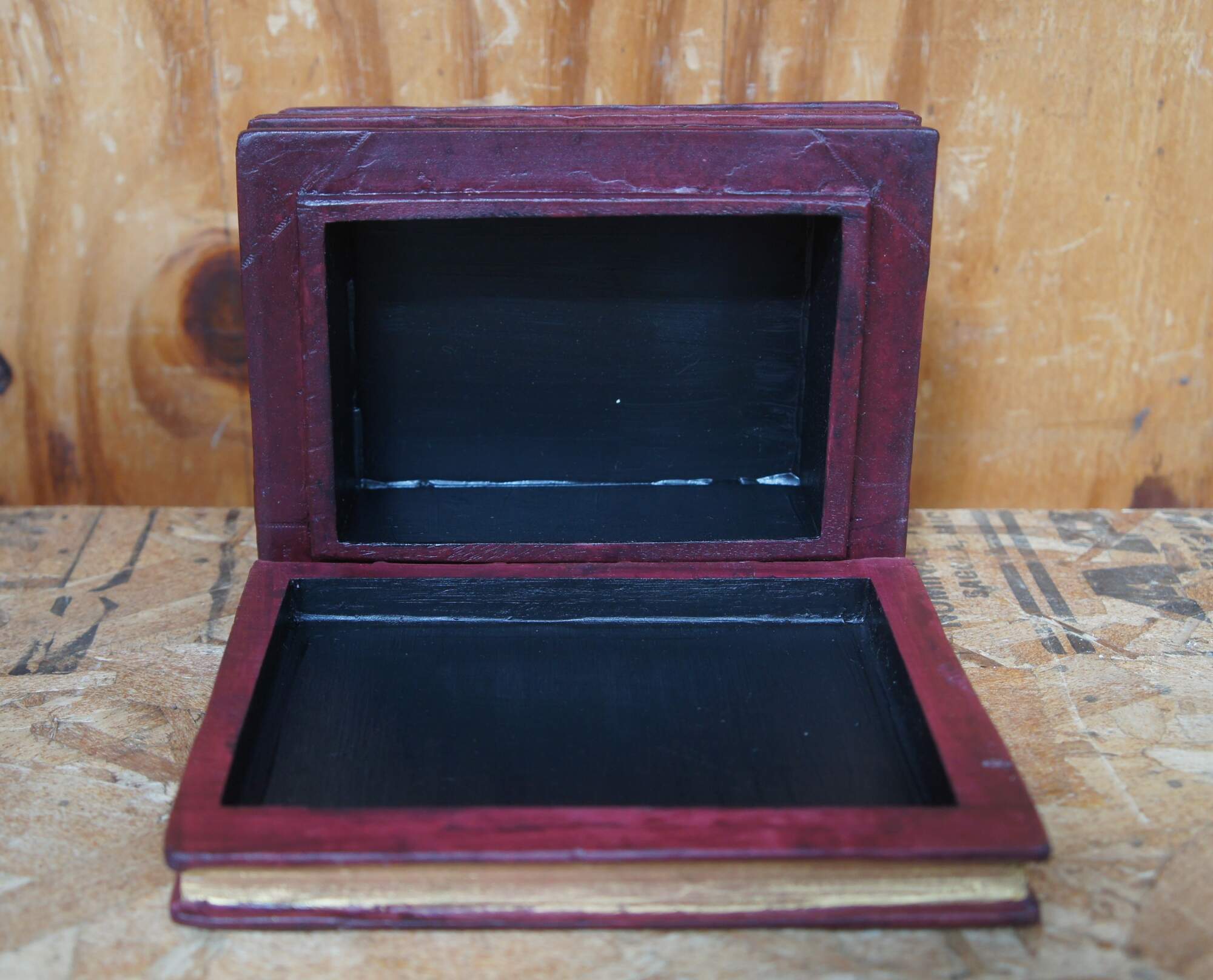 This storage or keepsake box is in the form of a stack of books, made from wood and can be realistically displayed or used to hide personal objects. In the form of the 19th century Fiction by Edward Bulwer, "What Will He Do With It
