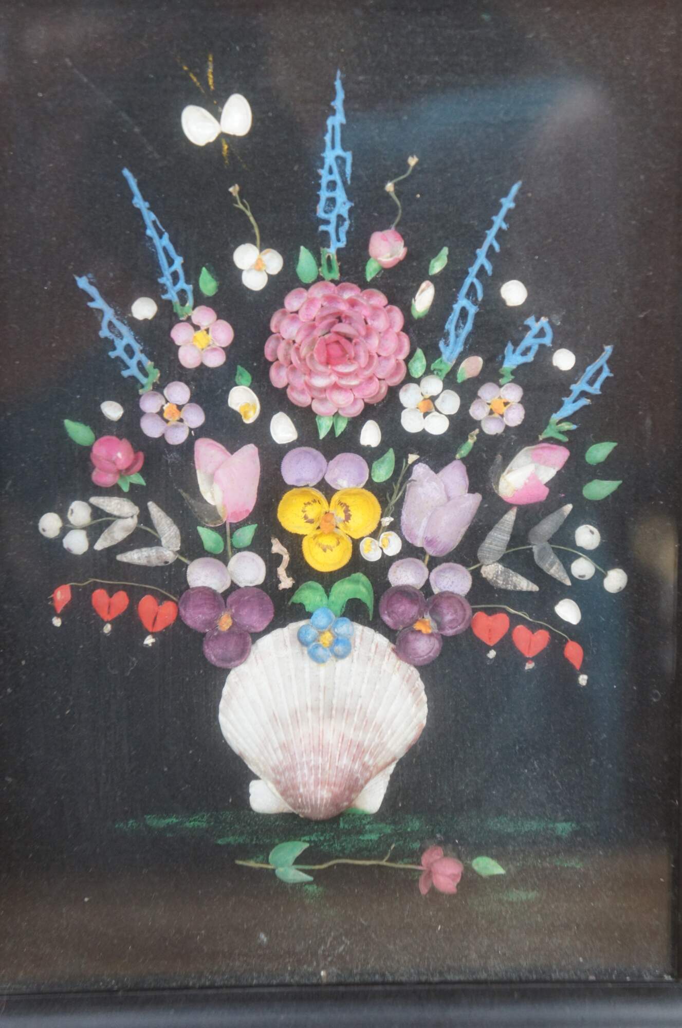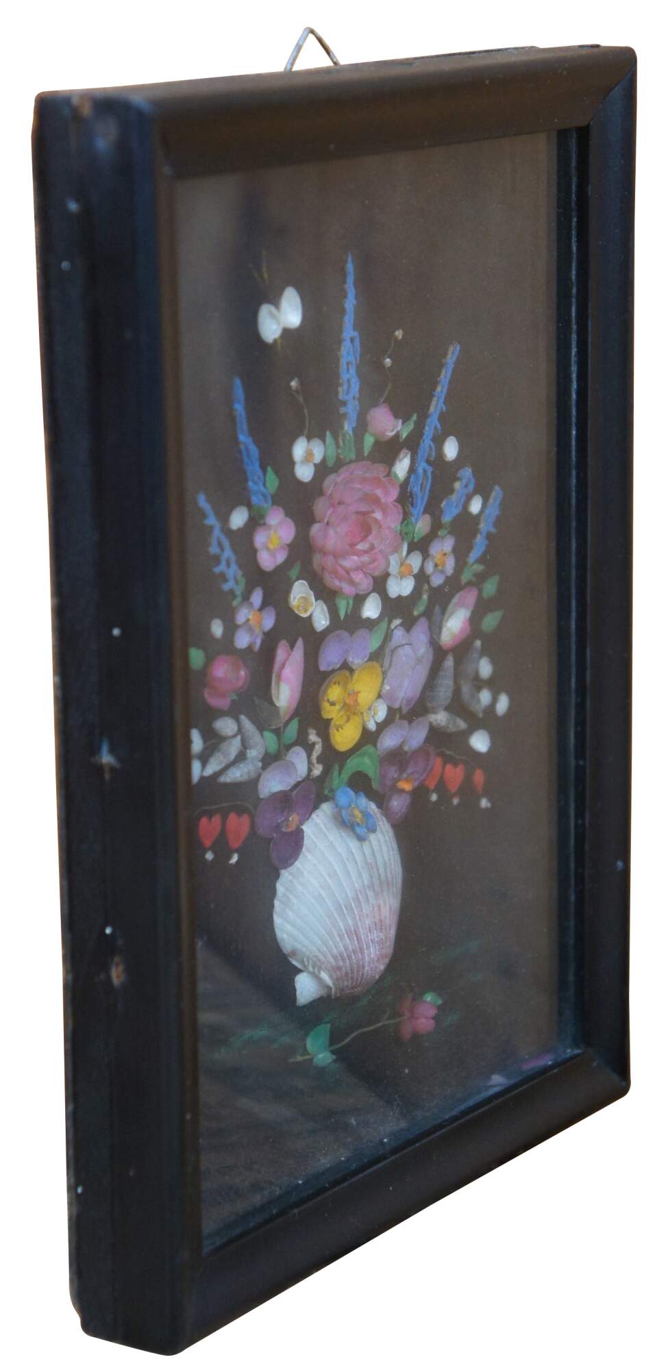 Small shadow box with tiny shells painted and placed to look like a floral arrangement. Made by Mrs Lehman of Detroit