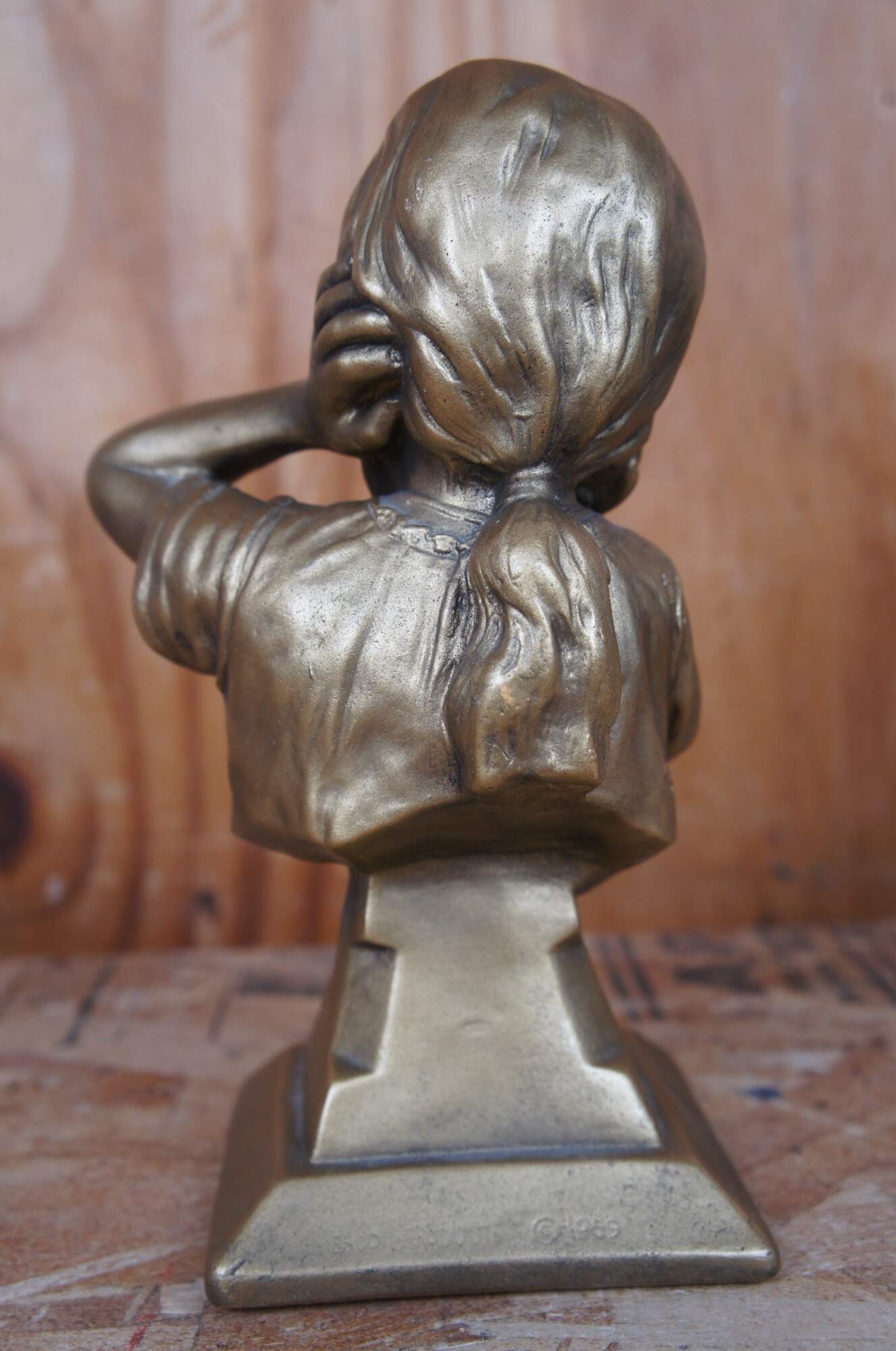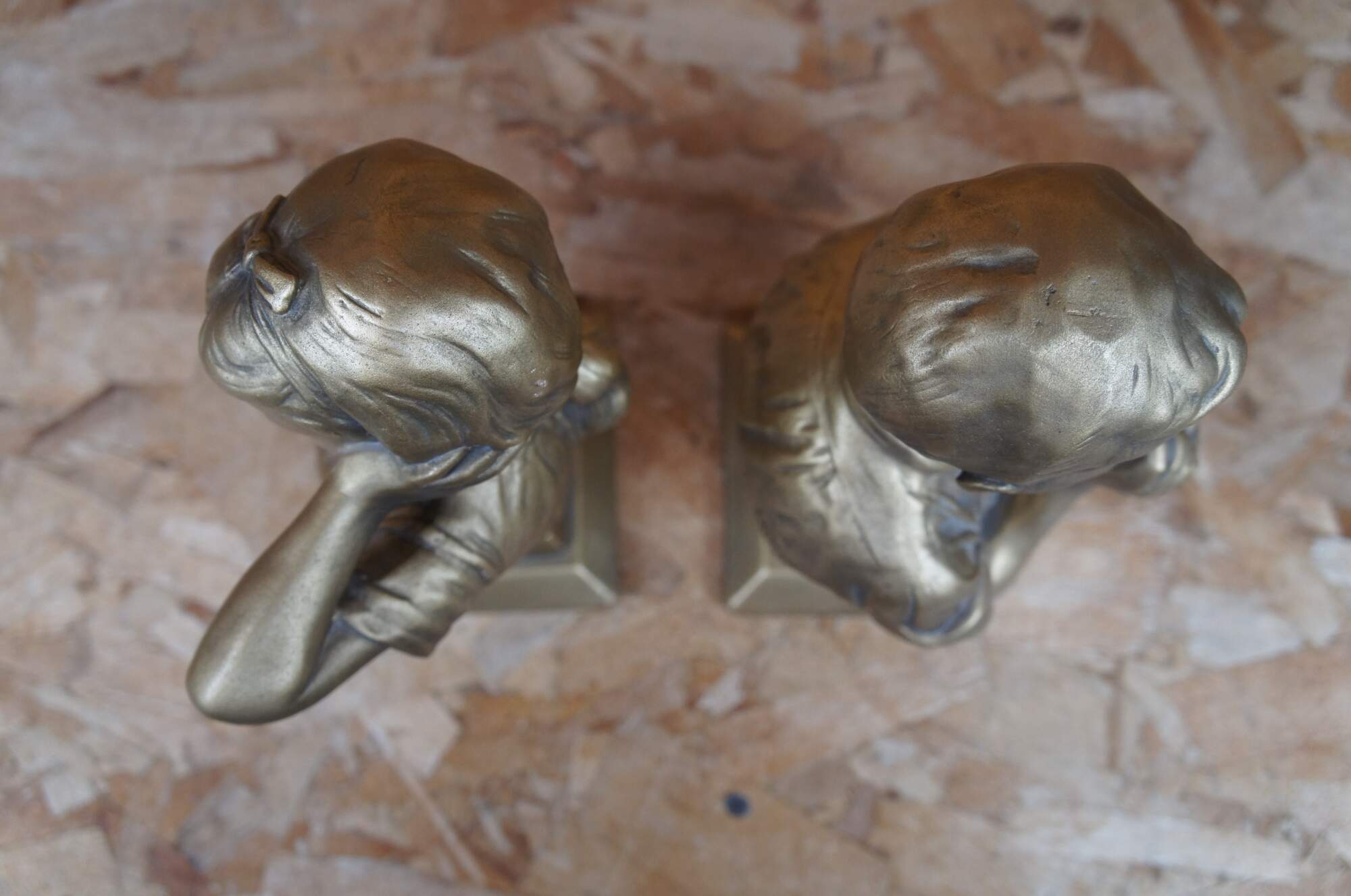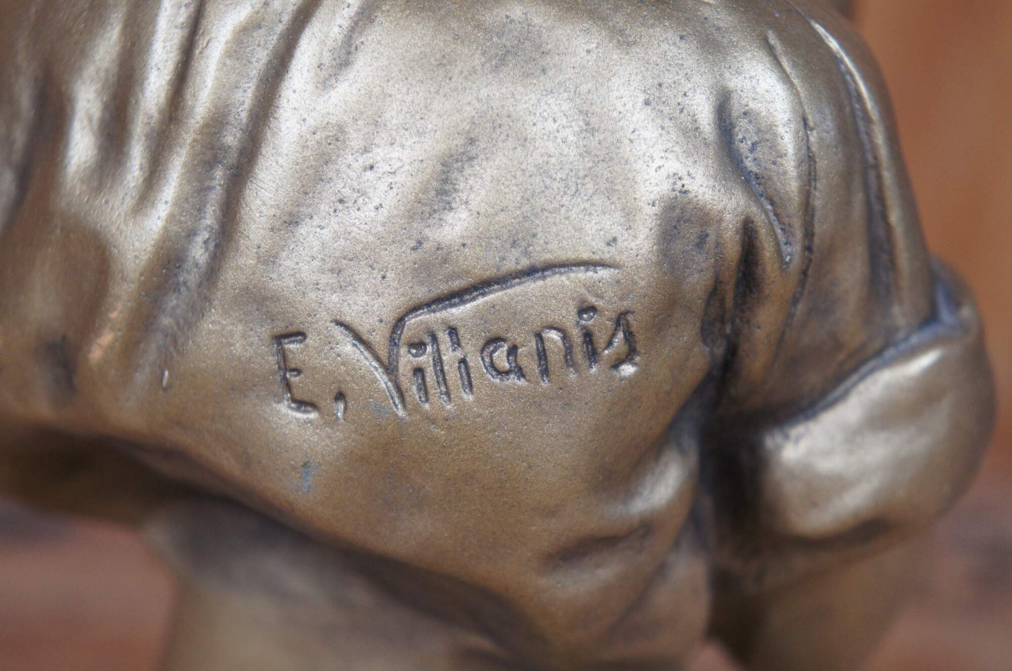 Pair of gold chalkware statues by E. Viliianis (Esco Products), both signed on back depicting a young boy playing a recorder / flute and young girl showing disgust at the noise.