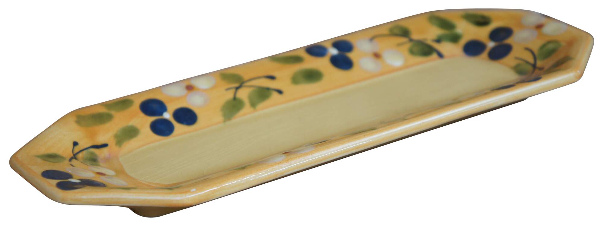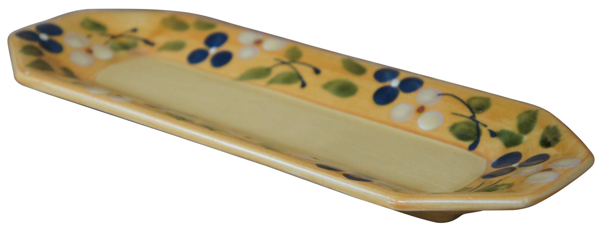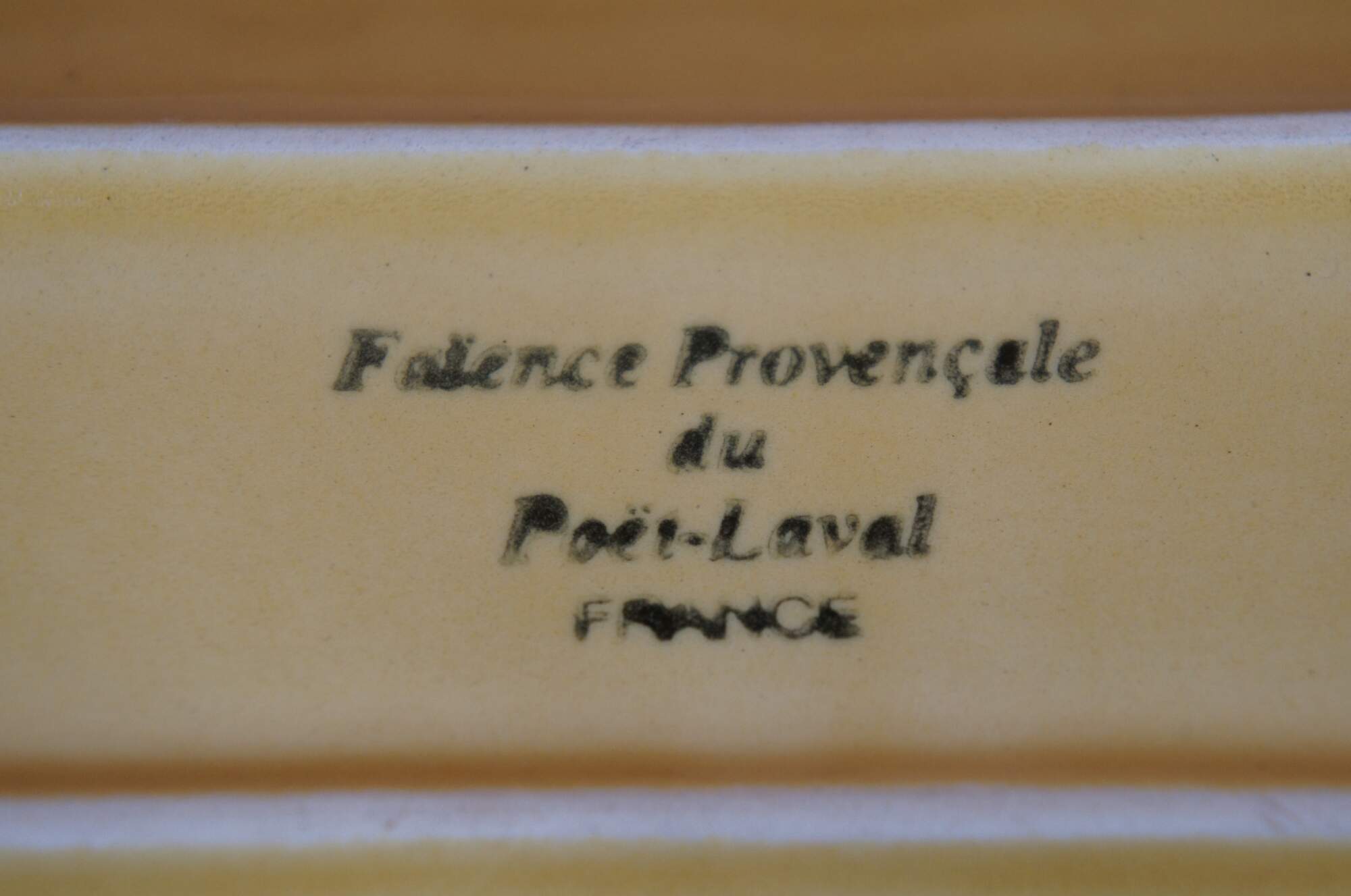 Yellow ceramic serving dish or plate featuring floral design stamped with Falence Provencale du Poët-Laval France on bottom.