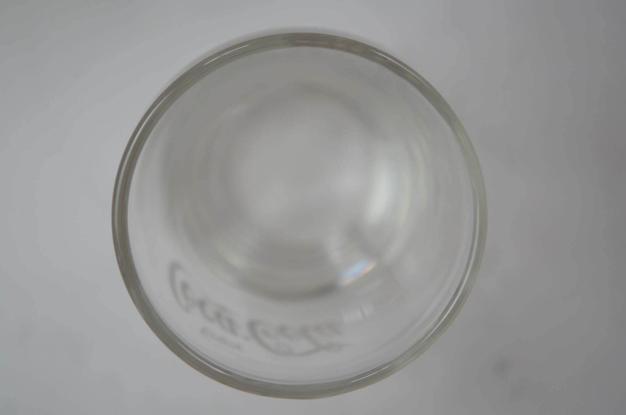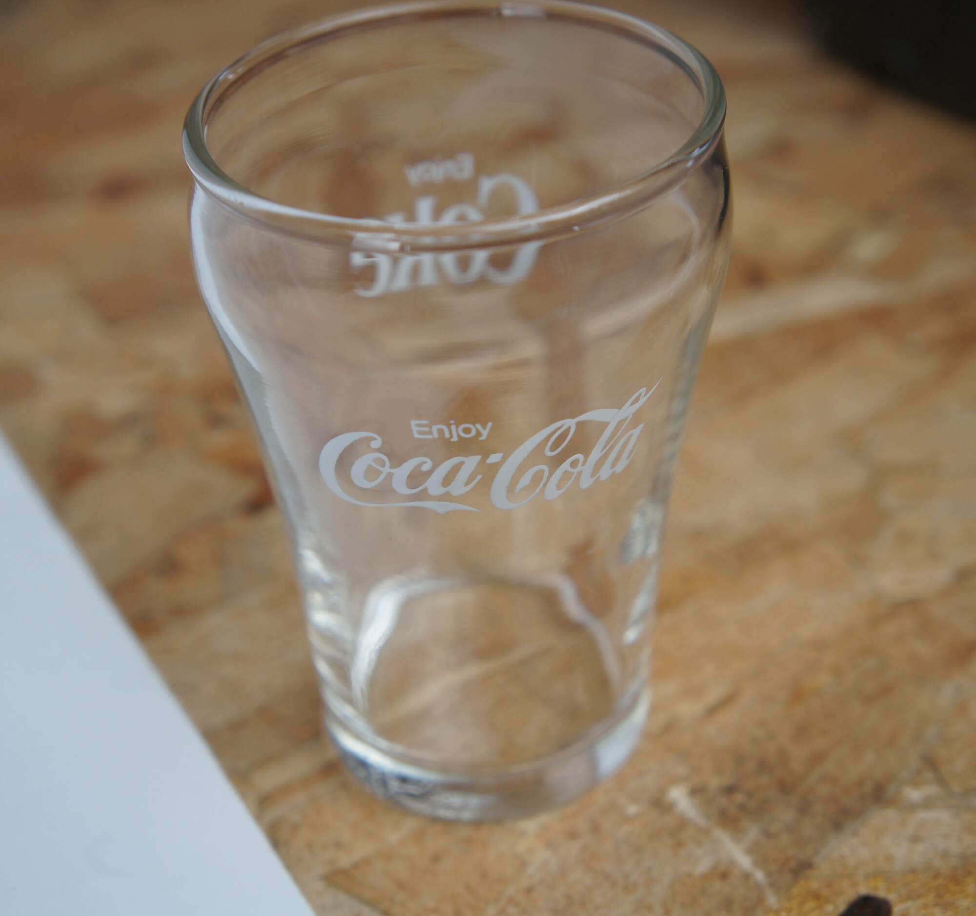 12 vintage 6oz clear with white writing Coca-Cola glasses.