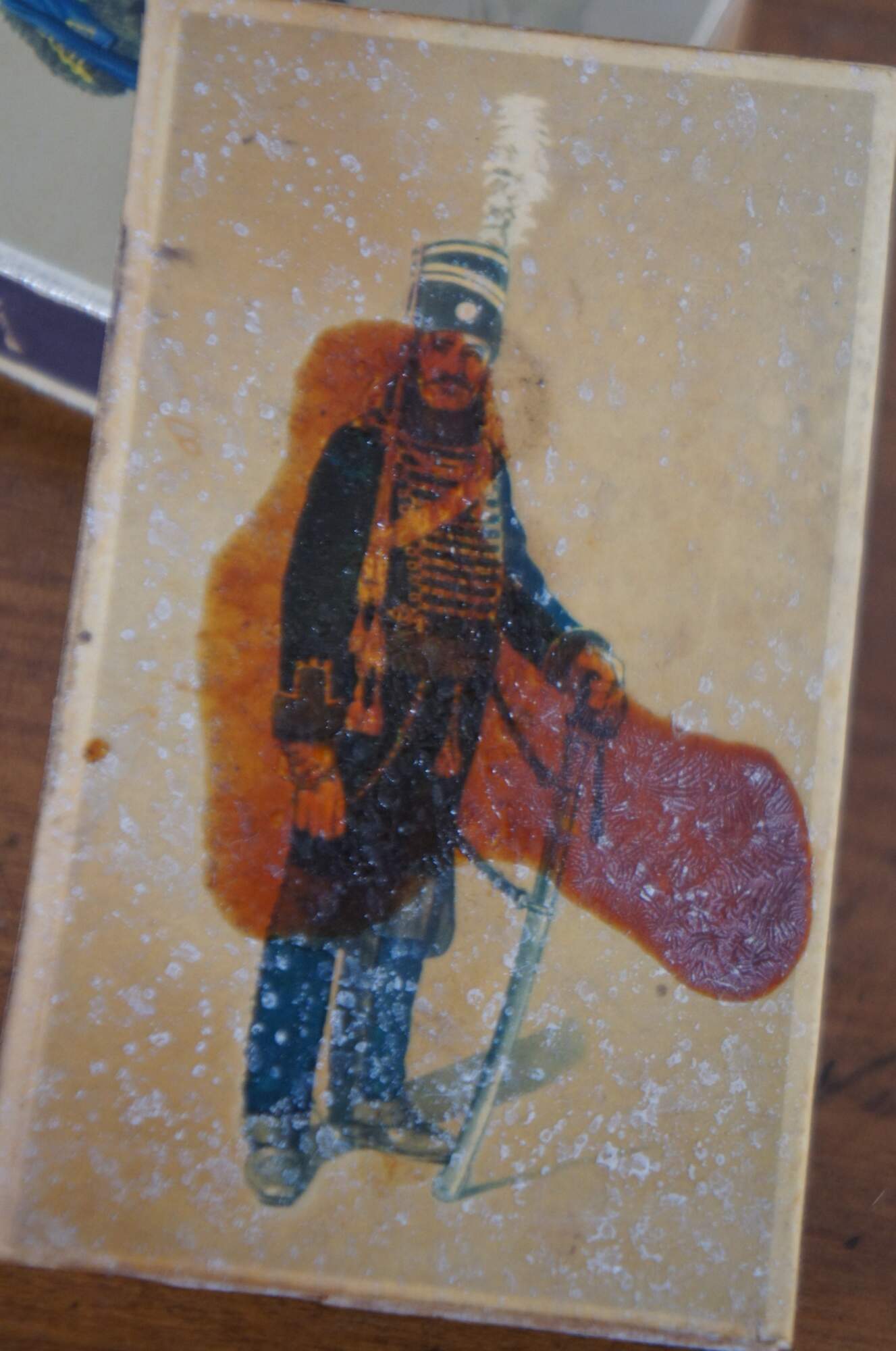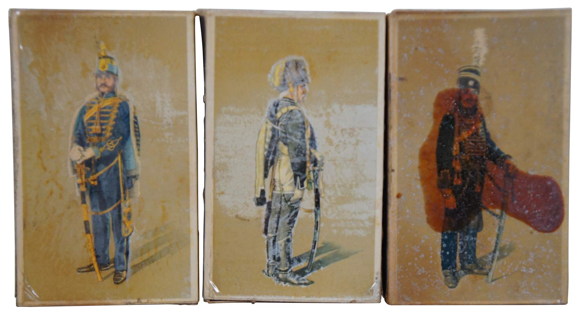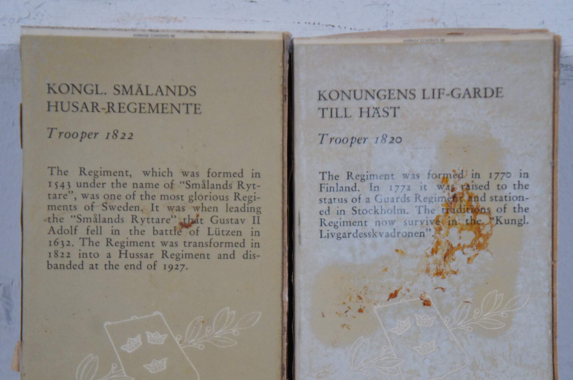 Lot of six mid 20th century large match boxes portraying a variety of Swedish military dress from the 18th and 19th centuries, made by the Swedish Match Company.