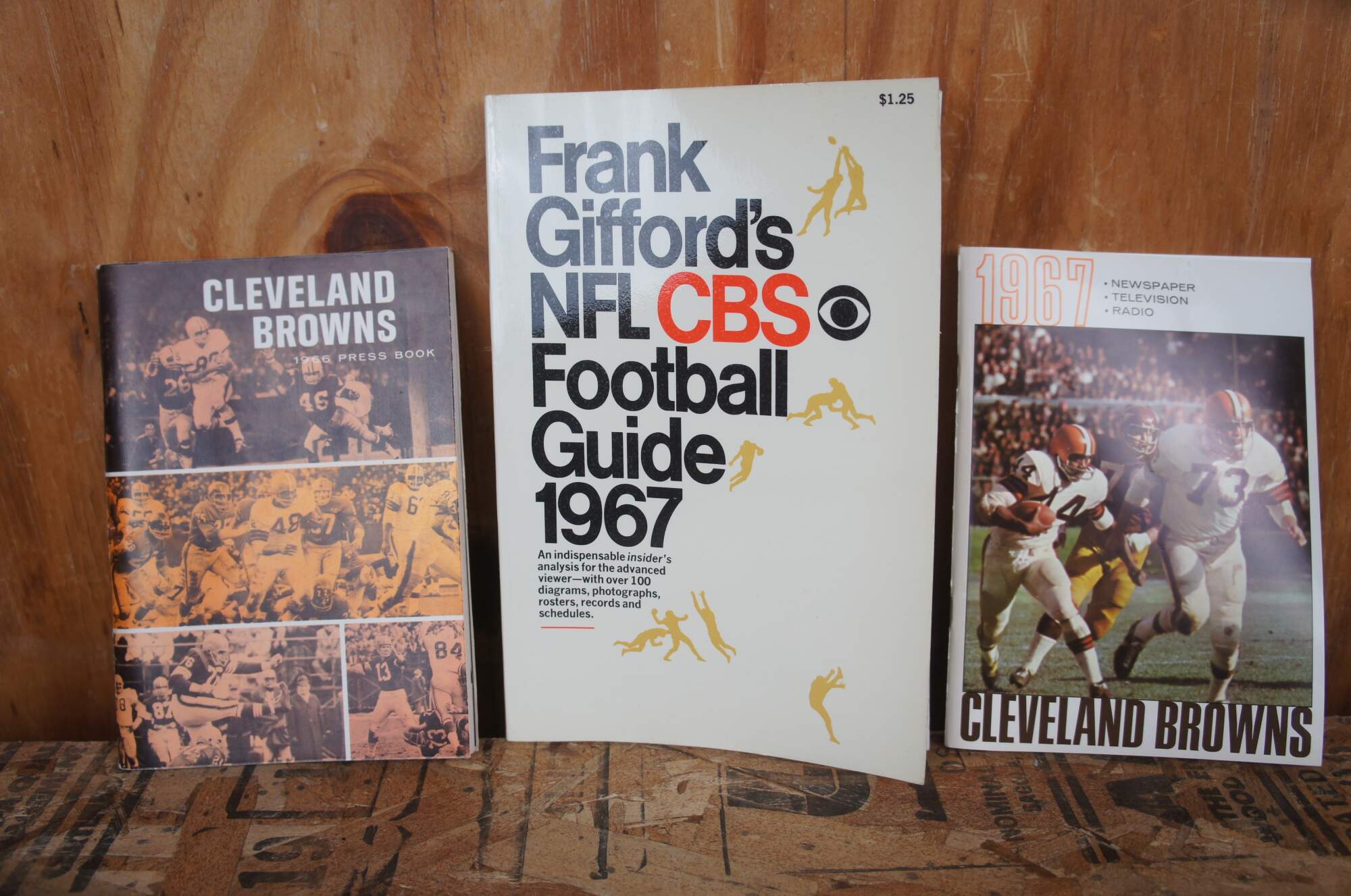Lot of 6 assorted American Football magazines, including Pro Football, NFL autograph books along with clippings pertaining to the Cleveland Browns.