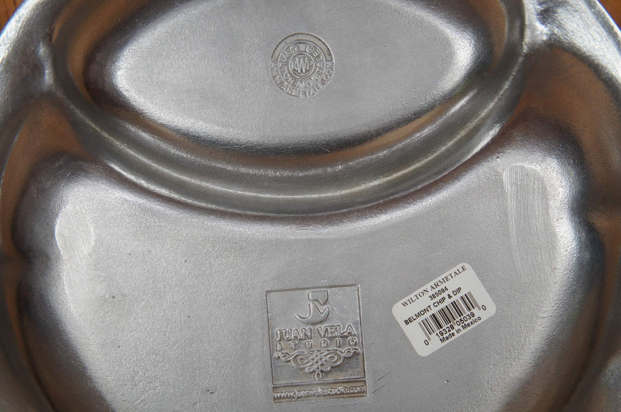 2 Pcs set includes small square serving dish and chip and dip server by Wilton Armetale in the Belmont pattern.