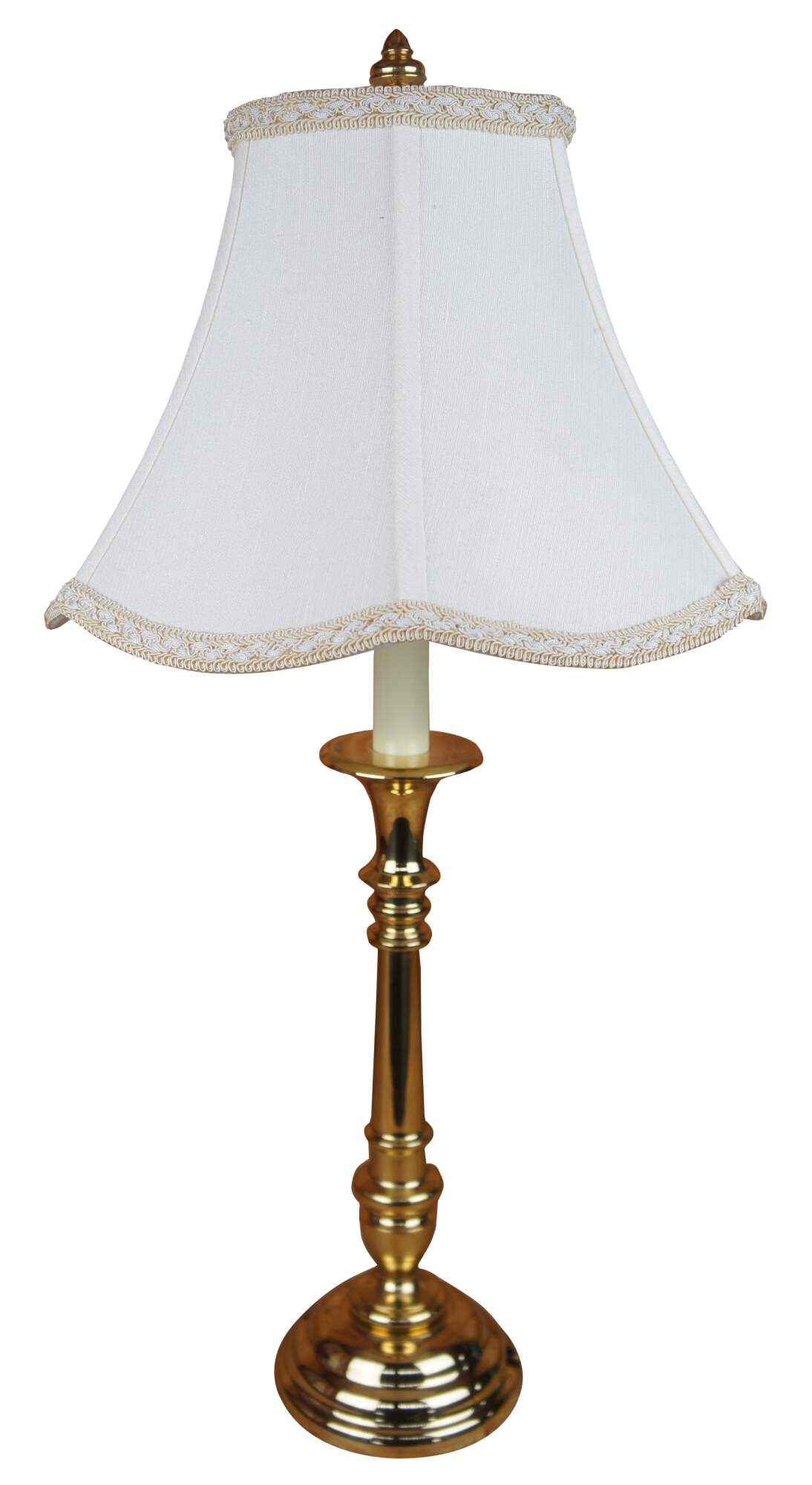 Vintage Baldwin Colonial or Williamsburg style solid brass candlestick lamp with white shade.