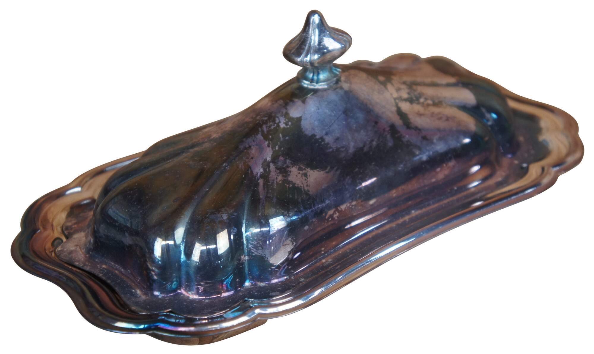 Vintage lidded butter dish featuring scalloped form and glass insert. Gorham Heritage, YH18.