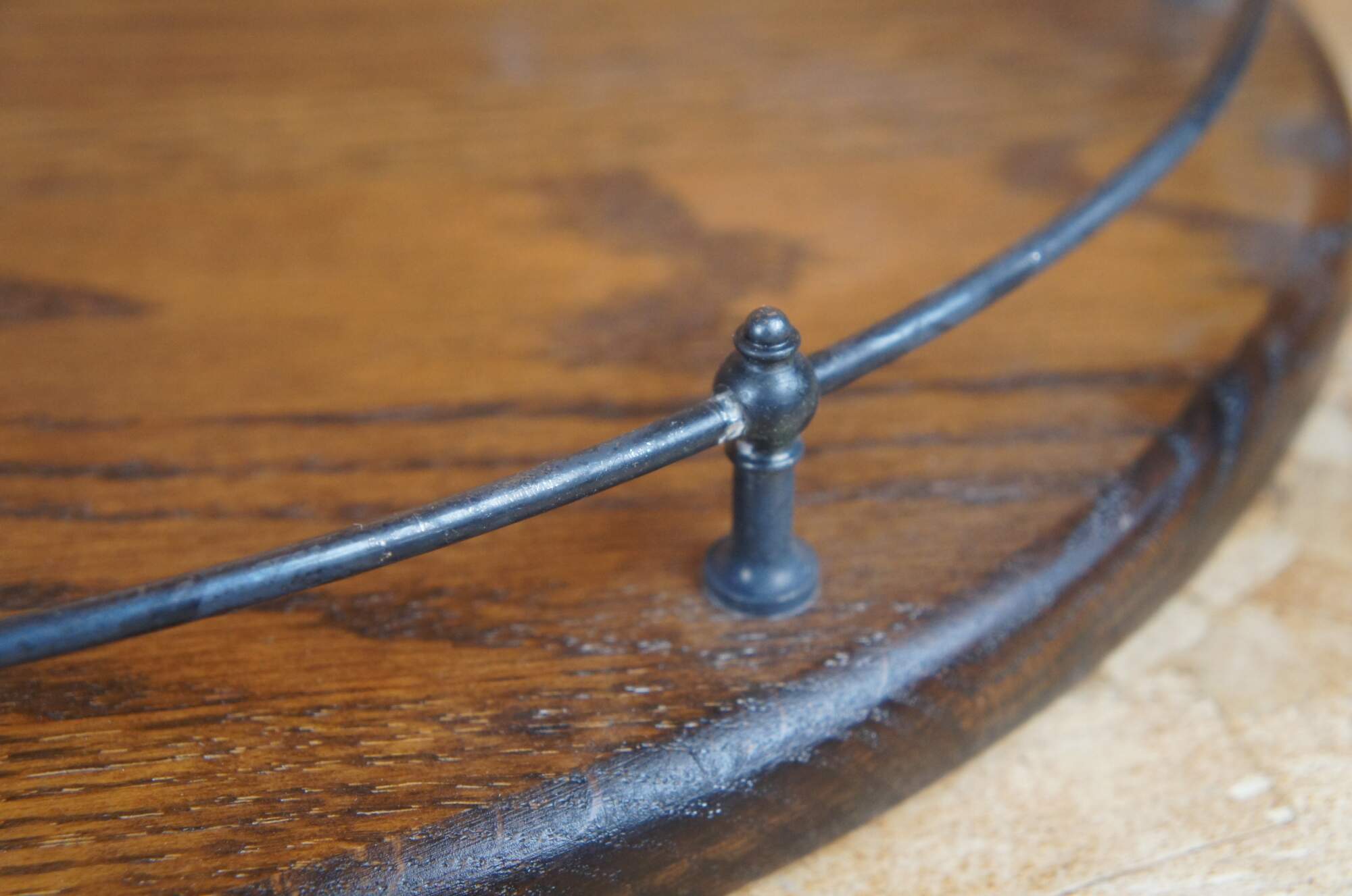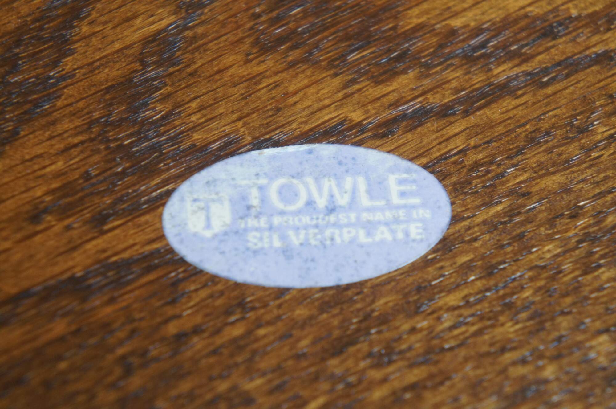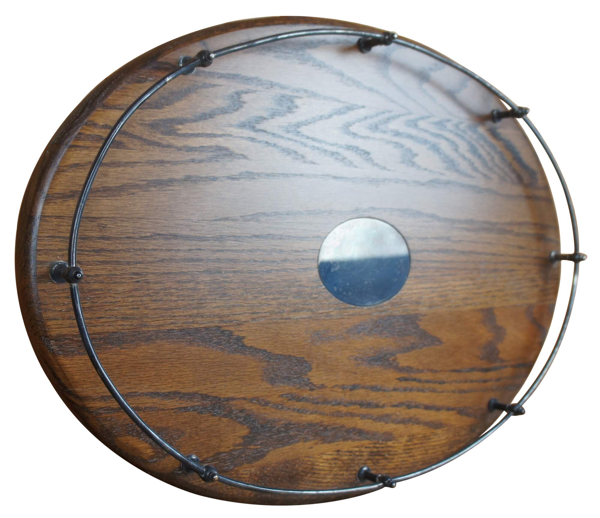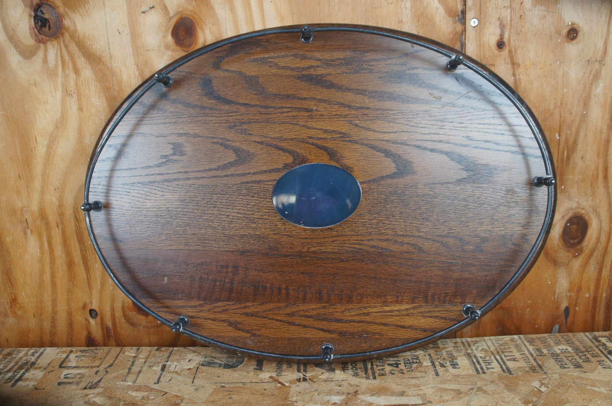 Towle oak wood platter or trays with silverplate Regency style gallery and central plaque for engraving.