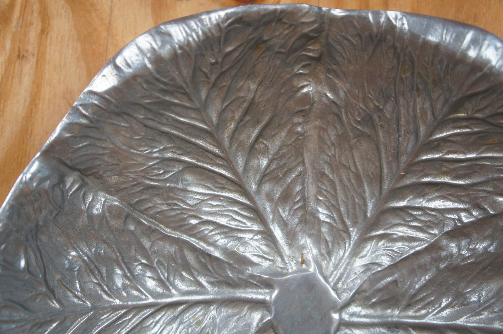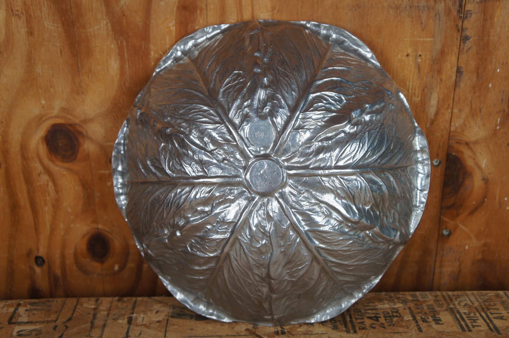 1976 Wilton Armetale serving bowl or dish featuring repousse cabbage or lettuce leaf design by Bruce Fox, Mount Joy PA.
