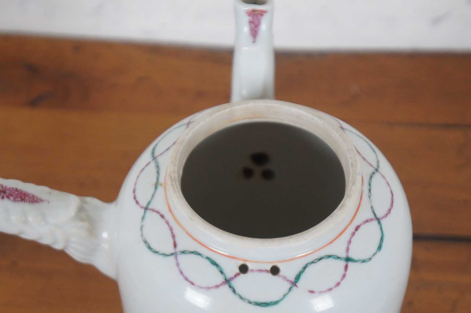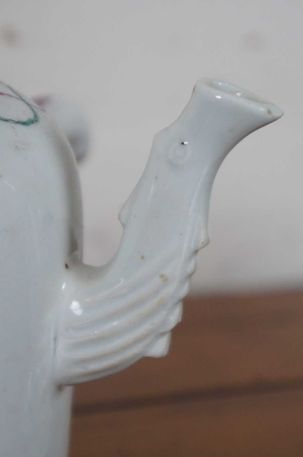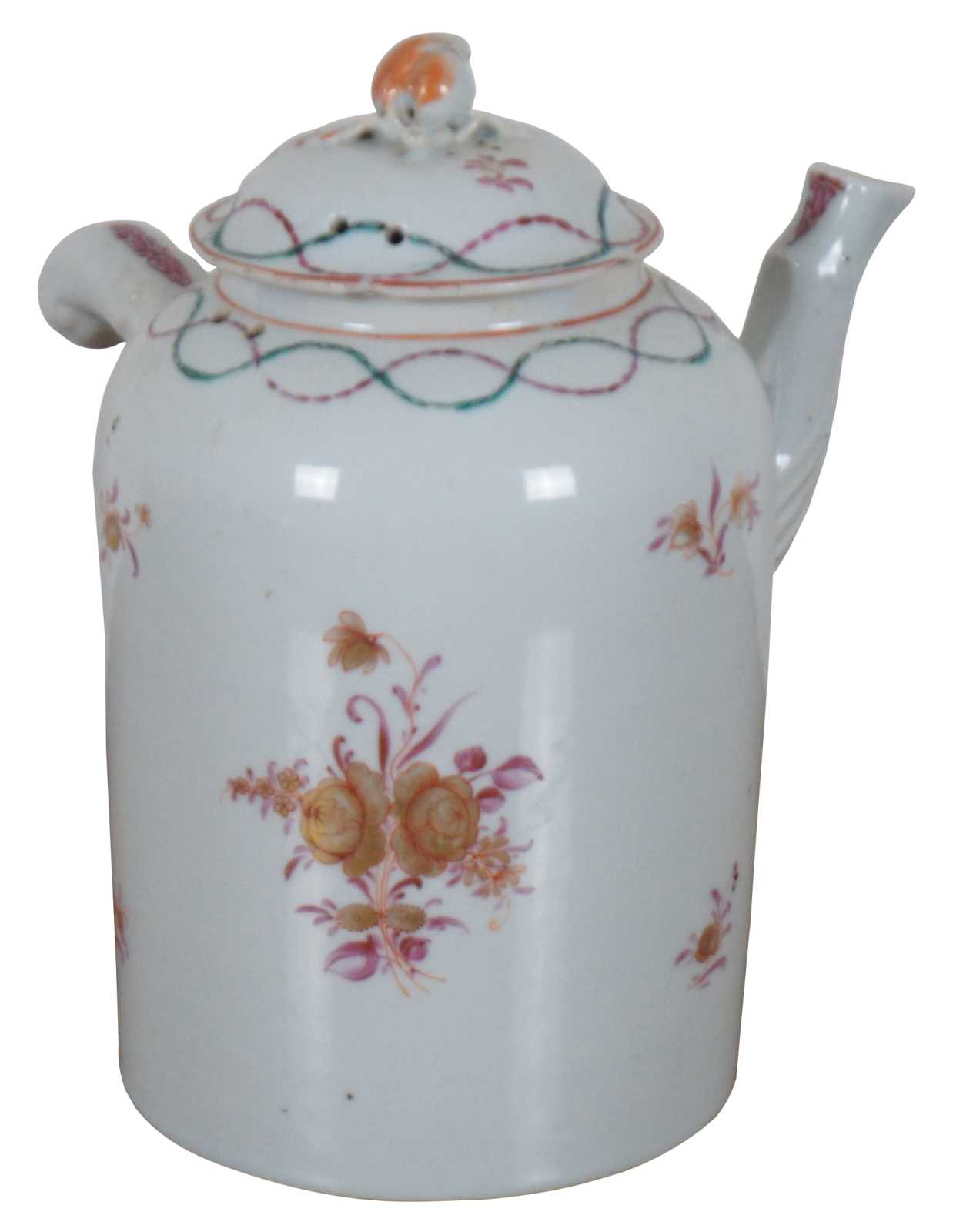 Antique late 18th to early 19th century Chinese Export (Qianlong Period, circa 1780) floral famille rose Armorial porcelain hot chocolate pot or chocolatière.