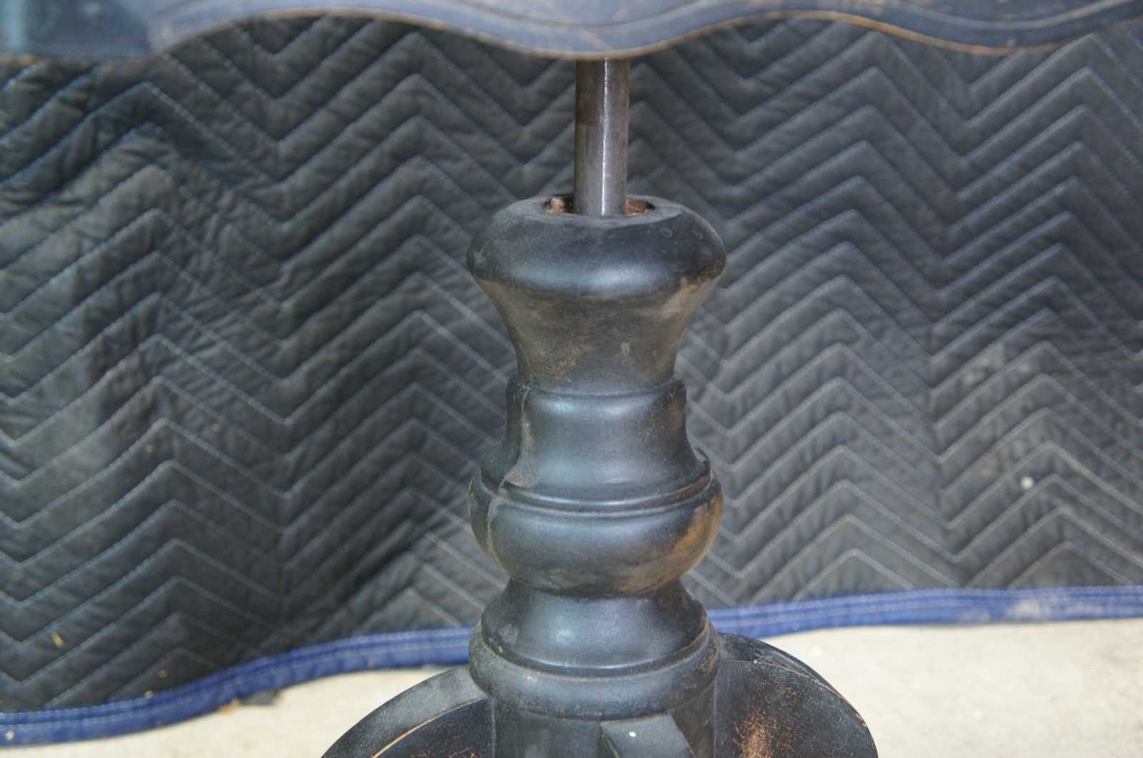 Antique Victorian piano stool, circa last quarter 19th century. A hardwood frame finished in black paint with adjustable seat. Seat is upholstered in black leather with nailhead trim.