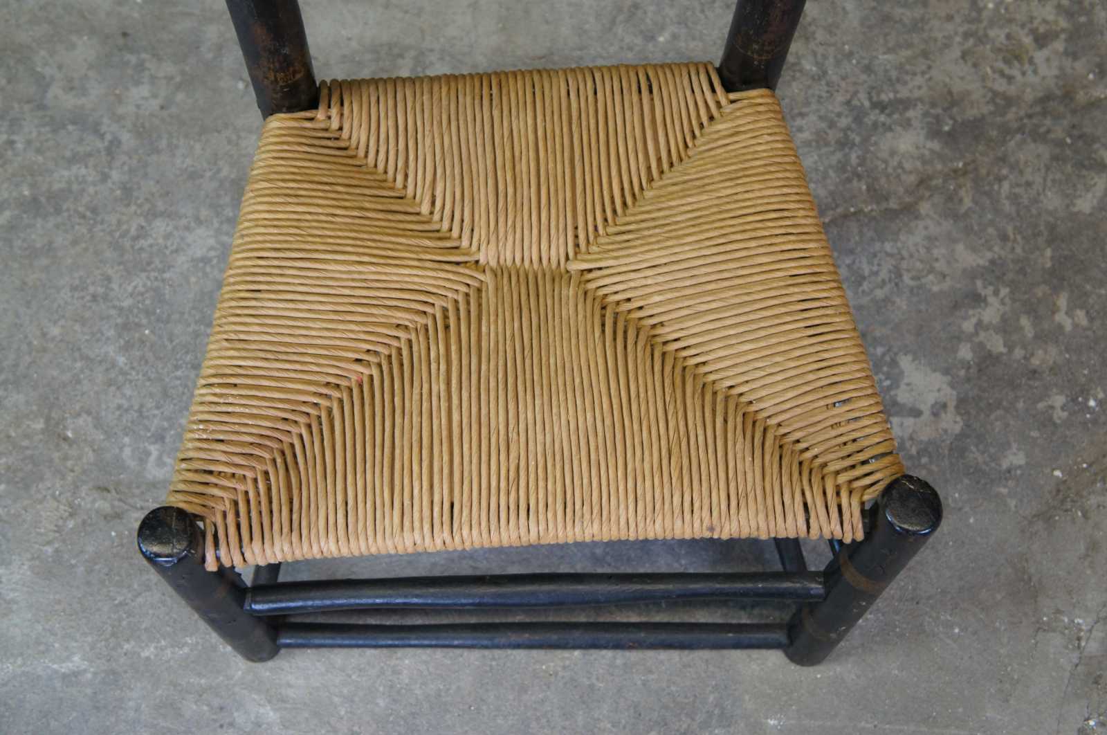 Antique mid 18th century Shaker chair featuring painted accents with ladderback and rush seat. Circa 1757, American.