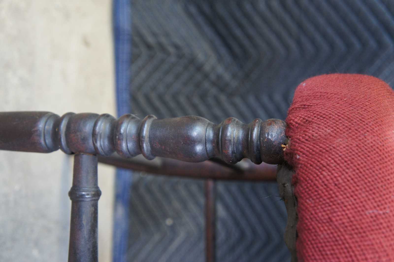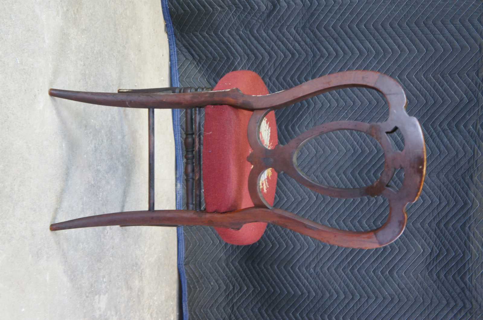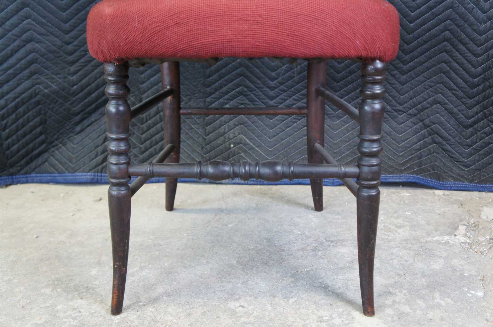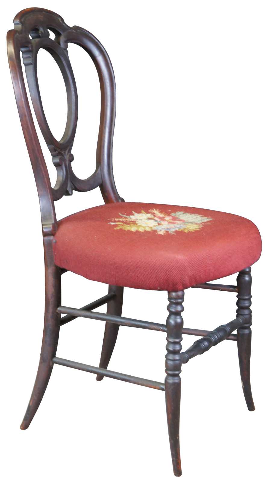 Antique 19th Century balloon back chair. Made of mahogany featuring serpentine form with balloon shaped back, needlepoint seat and turned accents.