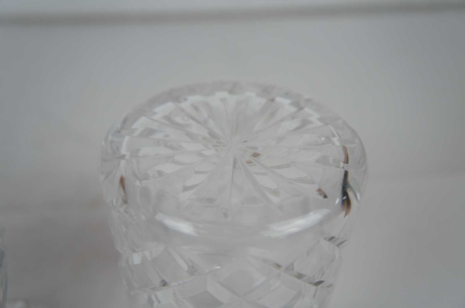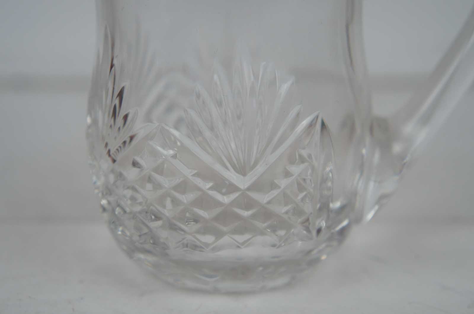 Wedgwood cut crystal creamer in the majesty pattern and Royal Doulton lidded jam jar with notched lid.