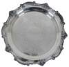 Vintage round Chippendale style silver plate footed serving tray by W&S Blackington, featuring a sweeping scallop shell border and feet and floral etched center.“W. & S. BLACKINTON CO - Meriden CT, founded in 1865. Acquired by Ellmore Silver Co in 1938. Independently owned and incorporated since 1961. Purchased by Raimond Silver Mfg. Co, Meriden in 1966 and moved to Chelsea, MA”