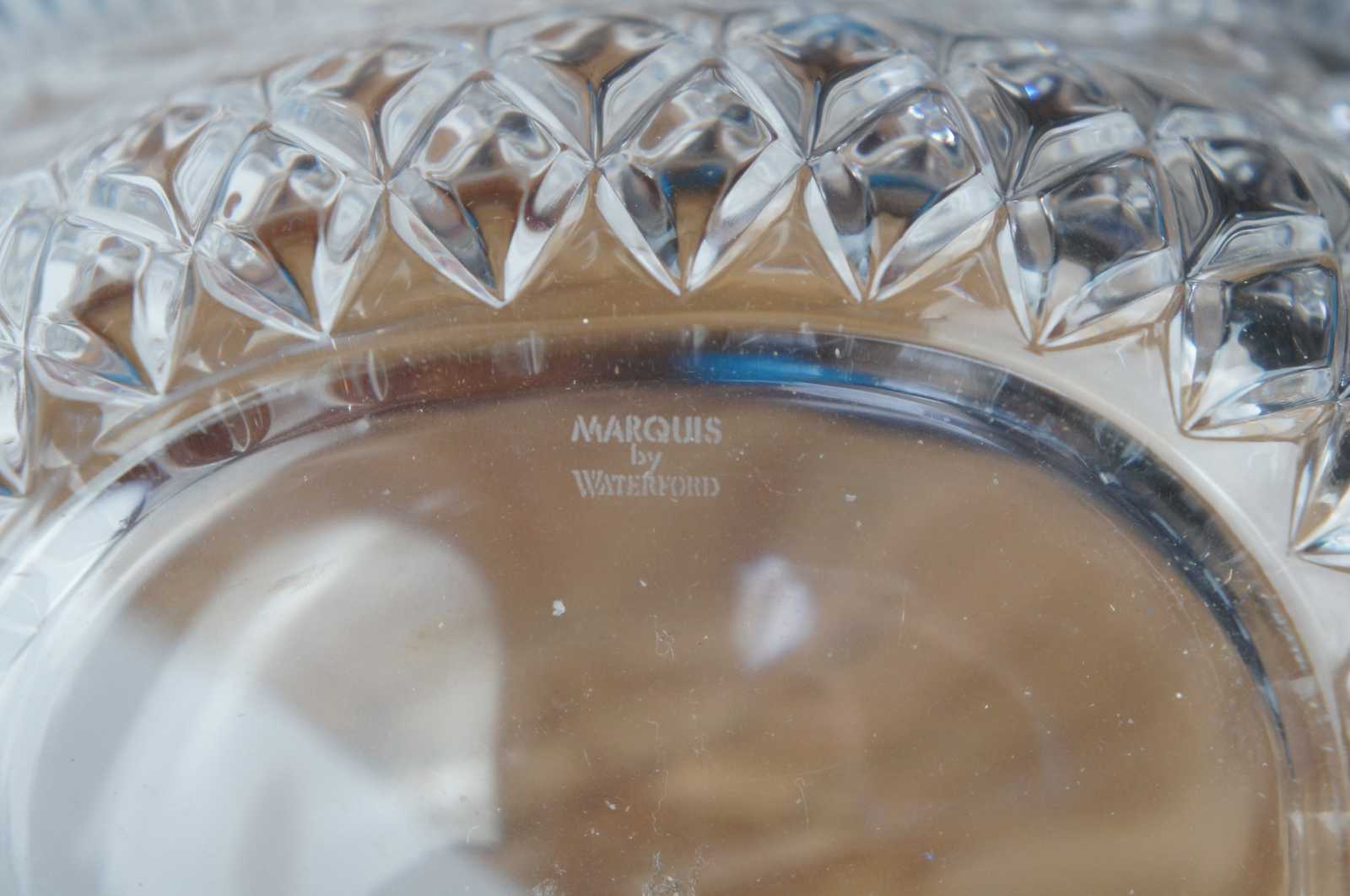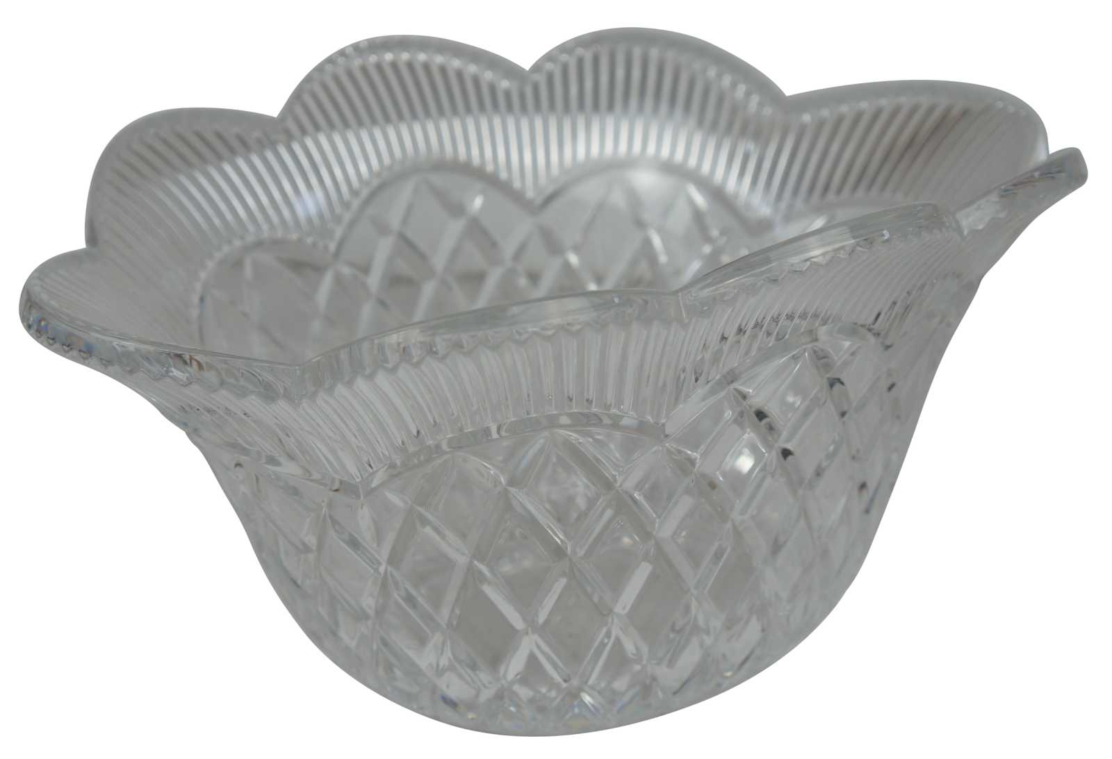 Vintage clear cut crystal bowl by Waterford Marquis, featuring a basket weave pattern and scalloped edges. 40007505