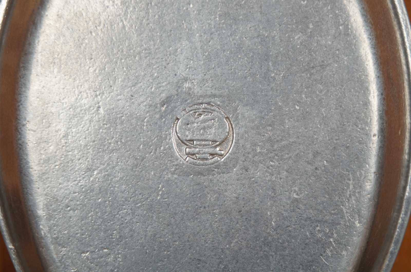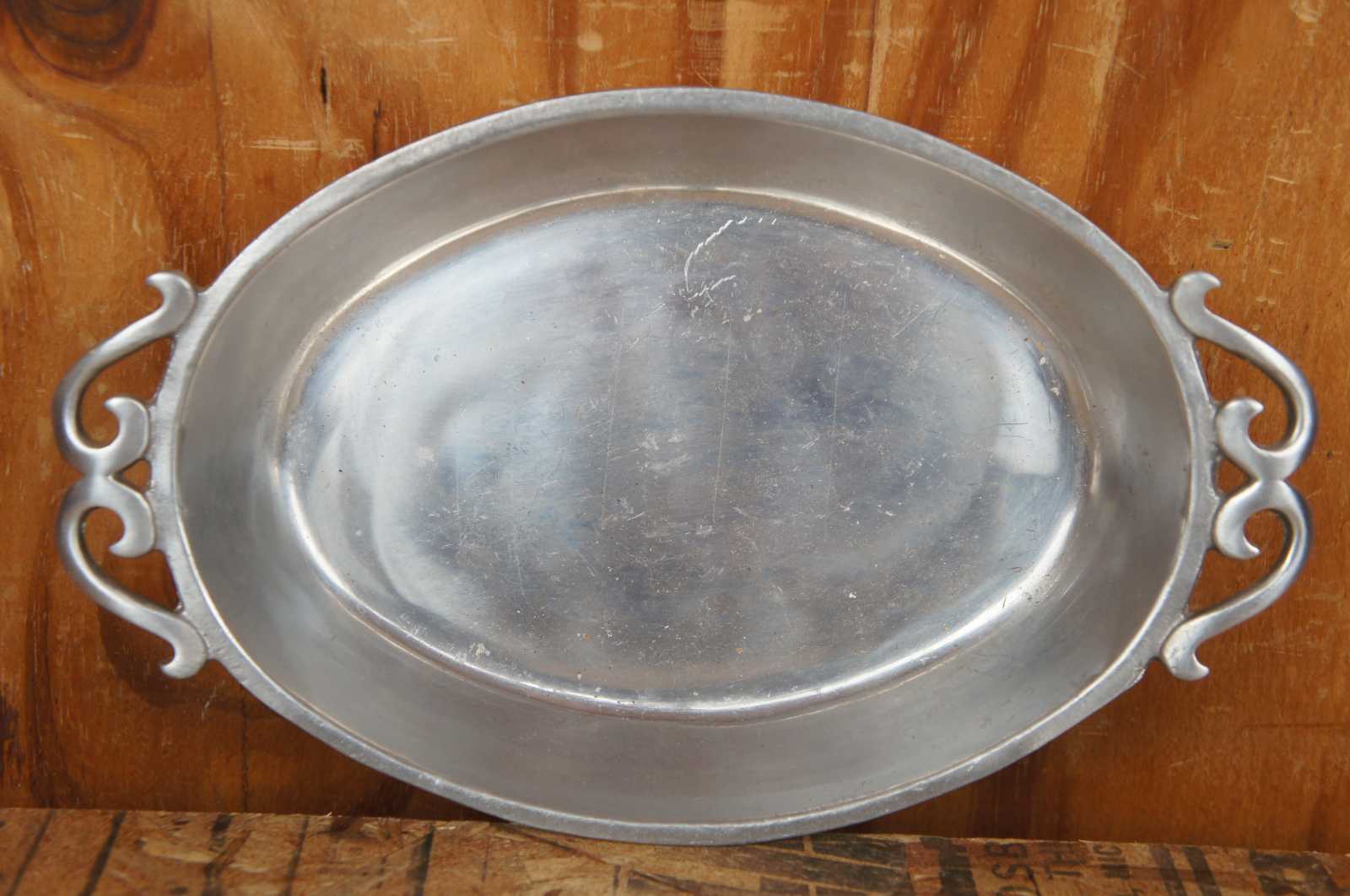 Oval platter or plate made of pewter by Pewtarex York Pennsylvania.