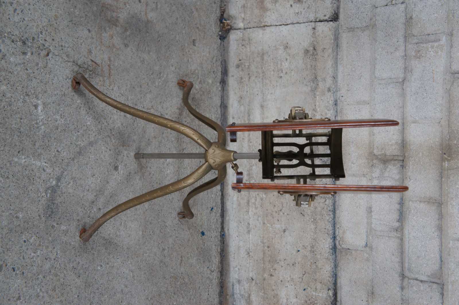 Antique adjustable Columbia Dictionary library stand by Josiah Anstice & Co of Rochester New York featuring ornate wrought iron pedestal base and quartersawn oak book holder. Circa 1895.