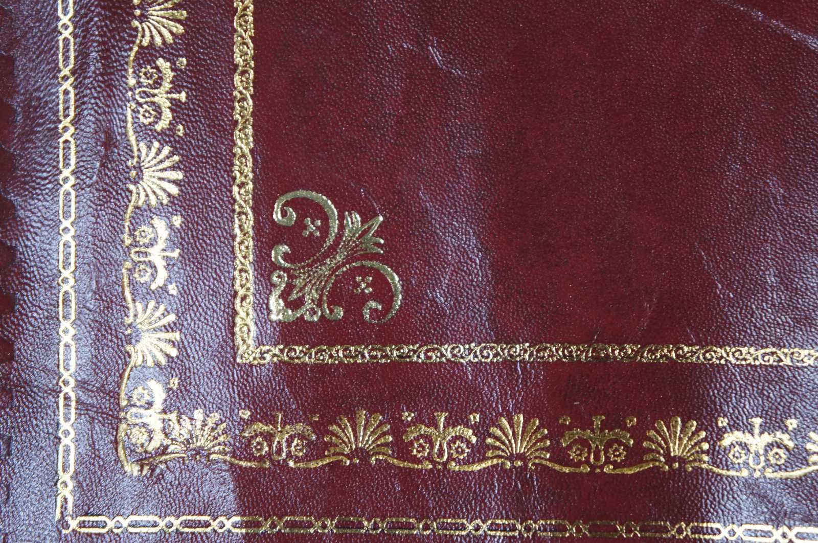 Antique tooled red or burgundy leather desk / table writing surface pad. Purchased in London in the 1980s.
