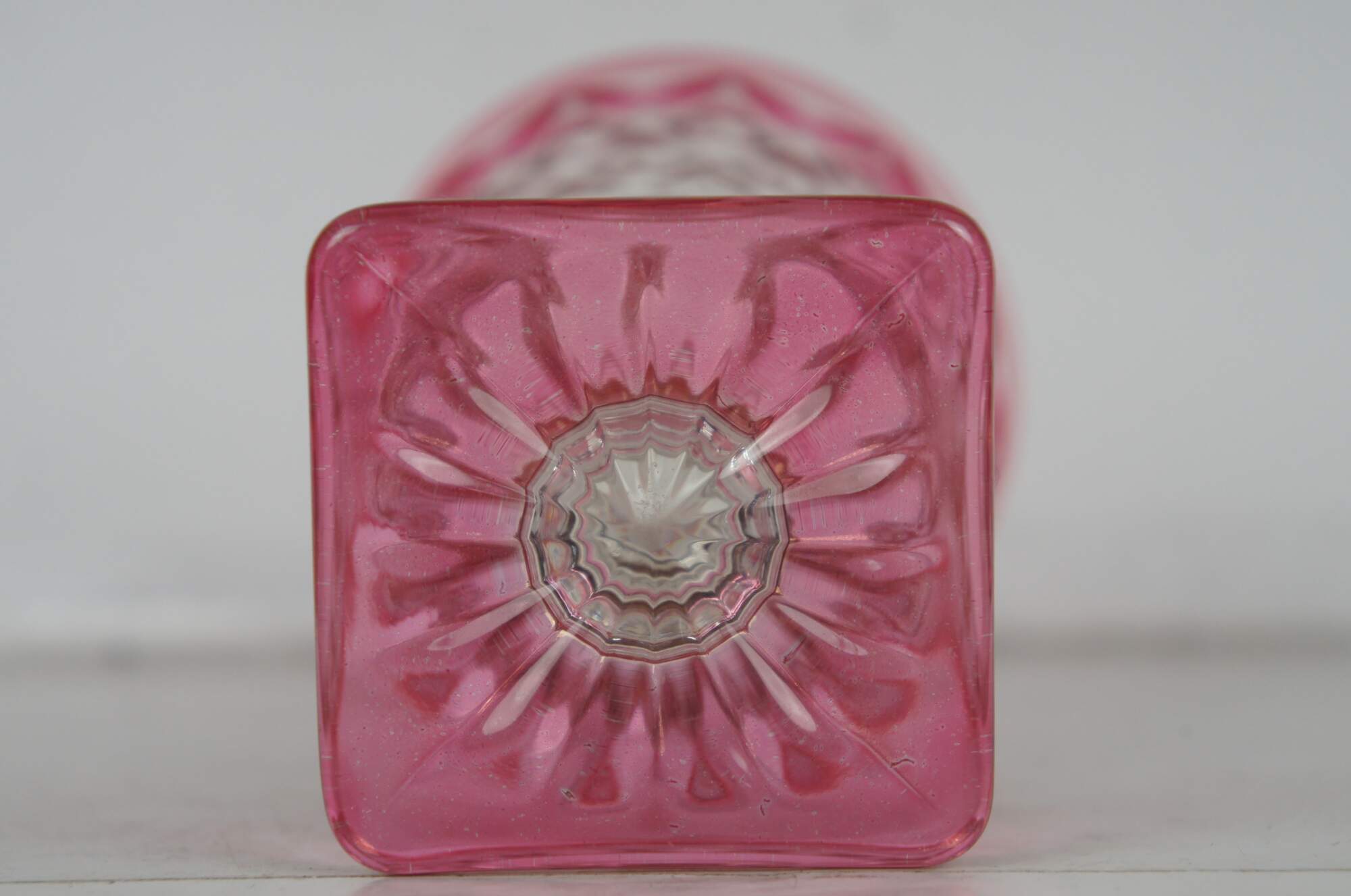Nine vintage wine / water glasses or goblets featuring diamond point pattern, footed square base and red ruby flashed rim and base.