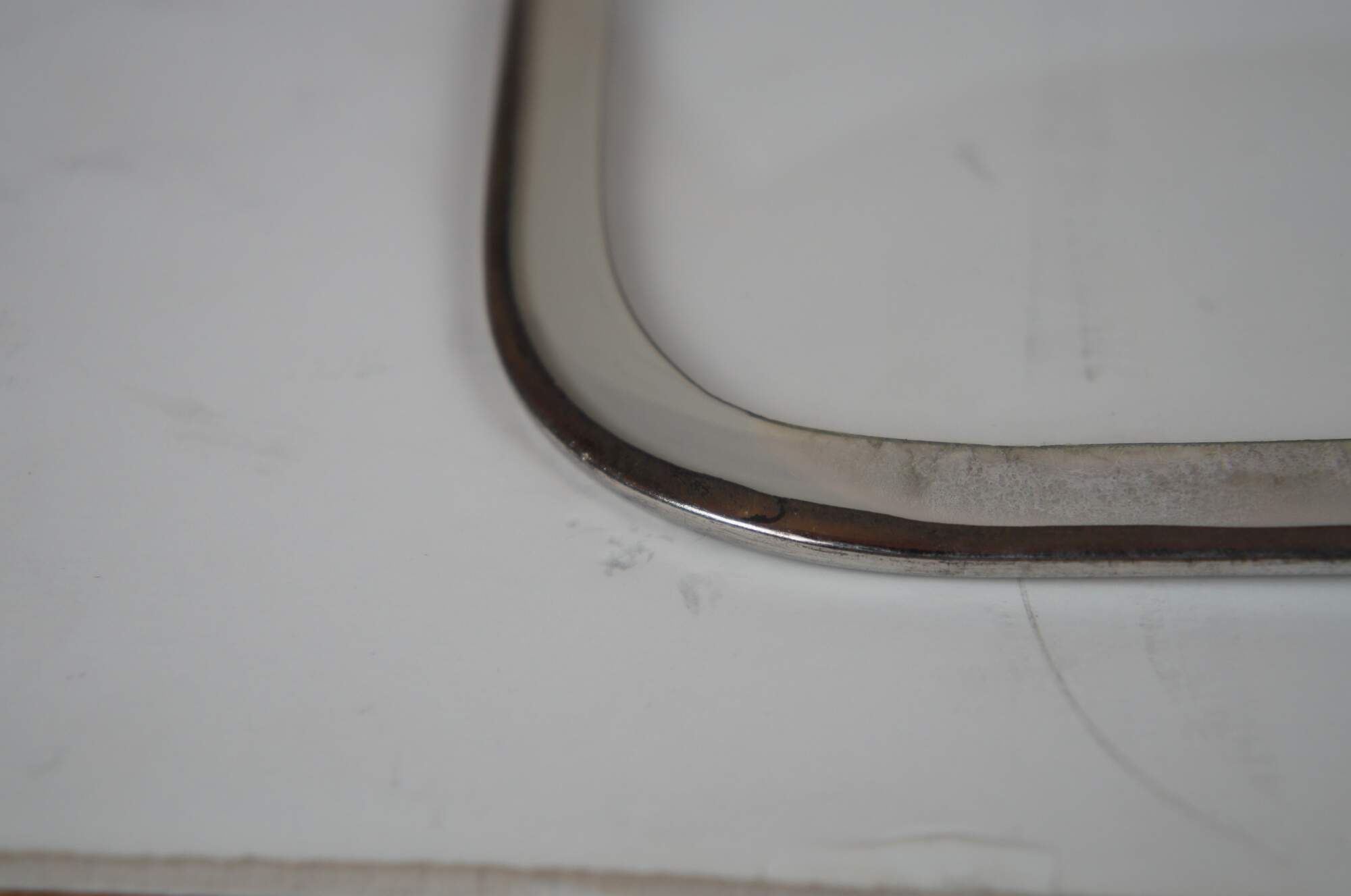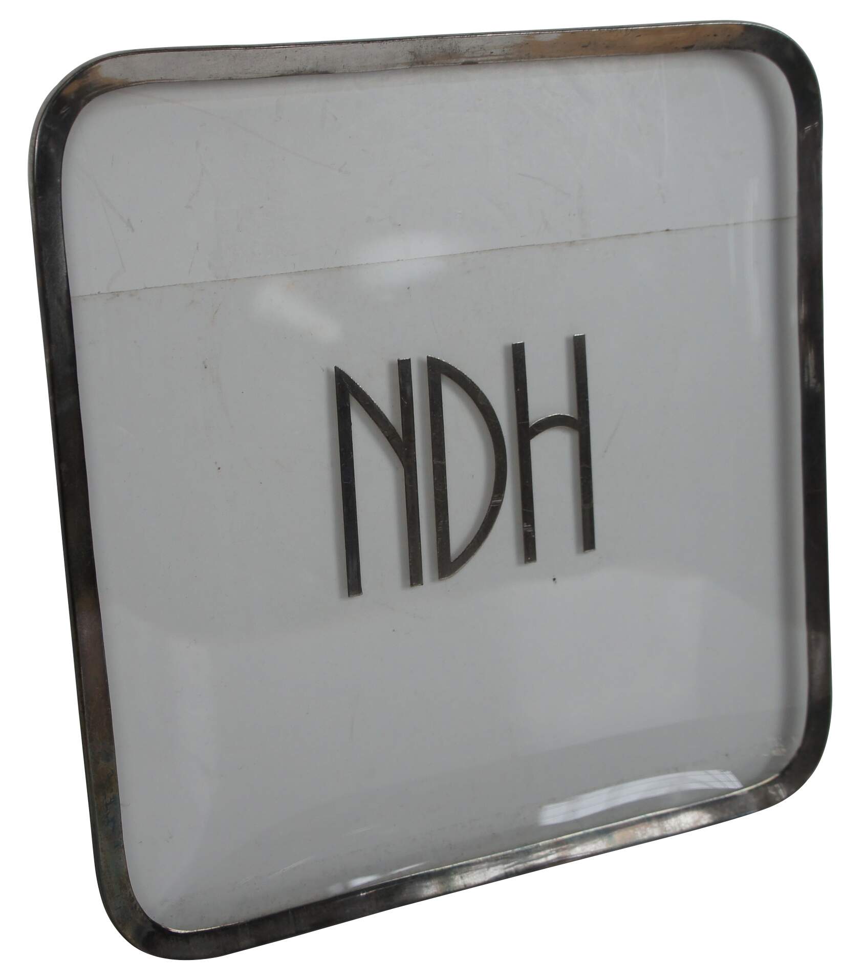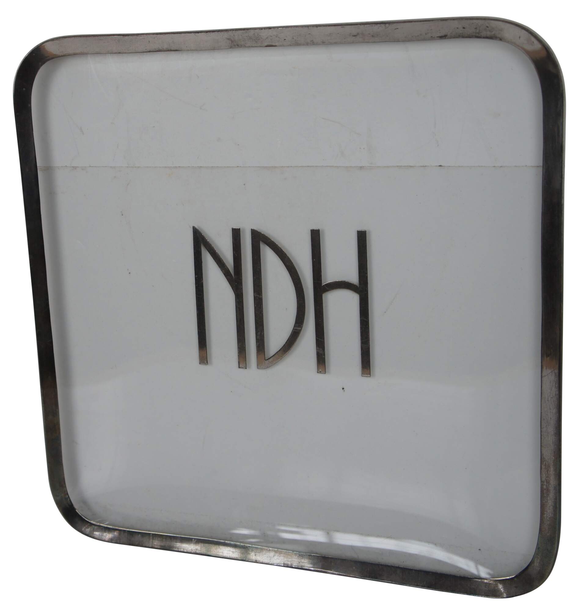 Vintage rectangular barware or serving tray with silver overlay rim and the initials "NDH" along the center.